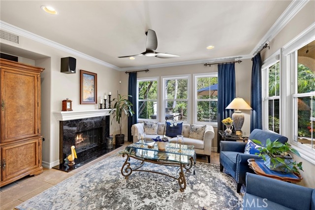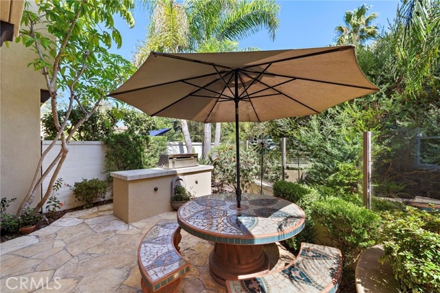 Perfectly positioned on the 9th green of the Talega Golf Course, this beautifully appointed residence blends timeless elegance with thoughtful upgrades throughout. Welcome to this incredible 3 bed 2.5 bath in a the Santalana neighborhood of Talega. From the moment you enter, refined details and custom craftsmanship set this home apart. The interior boasts TriWest-Kahrs wood flooring complemented by Tagina Tivoli Roman Scuro tile across the first floor, while the primary suite is elevated with Crema Marfil marble and a frameless glass shower enclosure. Matching Petra Latina tile carries seamlessly into the bathrooms and laundry. A custom-built California Closets system enhances the primary walk-in closet, while crown molding graces the living room, primary bedroom, and bath for a touch of sophistication. The kitchen has been extensively upgraded, featuring quartz-wrapped counters and backsplash, cherry wood soft-close raised panel cabinetry, and an air purification system integrated with the HVAC for modern comfort. A finished black marble fireplace, custom staircase railings, and upgraded insulation further reflect the home’s quality. Outdoors, enjoy resort-style living with beautifully designed hardscaping and landscaping. A custom BBQ, fountain, and limestone finishes create the perfect setting for gatherings, shaded beneath a freestanding patio cover. The garage is complete with epoxy floors and custom built-in cabinets for a clean and polished finish. This home is a rare opportunity to experience luxury living with serene golf course views and an array of custom upgrades. Come enjoy all that Talega has to offer with an abundance of pools, parks, and easy access to shopping and dining.
