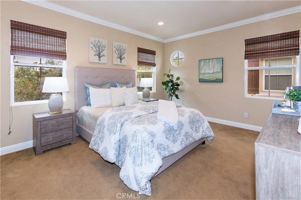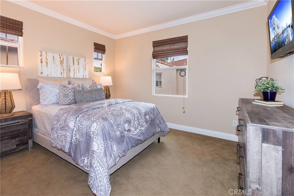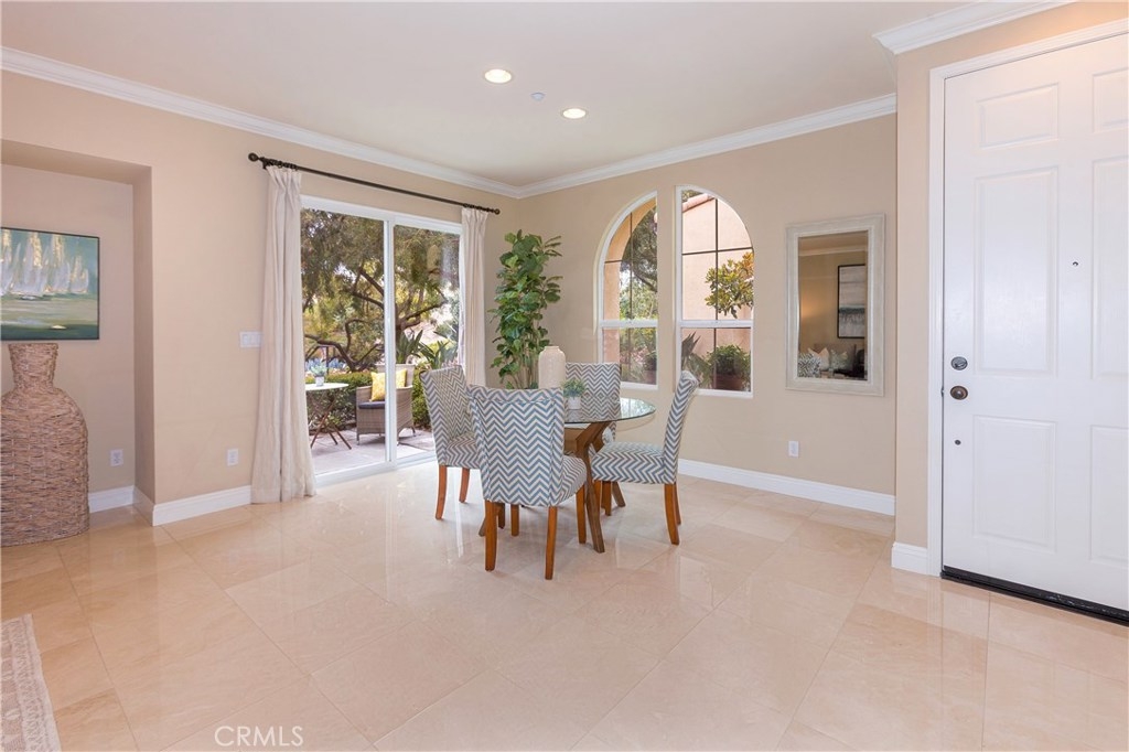 We proudly present this private, beautifully appointed end unit WEST FACING townhome located in the Alassio community of Talega San Clemente. WALK to the community resort caliber pool, spa and clubhouse as well as Peets Coffee, Panera Bread, restaurants, golf, shopping, salons and award winning Vista Del Mar School. This spacious light and bright model offers 3 bedrooms and 2.5 baths. Marble floors and crown molding enhance the first level of the 2-story design. The oversized and open eat-in kitchen is complete with granite counters and extensive cabinet space. You’ll find that the crown molding continued throughout the second level. The master suite includes a large walk-in closet with master bath boasting dual sinks and separate tub and shower. The two secondary bedrooms are down the hall and generous in size. The upstairs bathrooms also feature marble floors. The full size laundry room and linen storage are conveniently located upstairs. The attached 2 car garage is equipped with built-in heavy duty storage by Topp Rax and epoxy flooring. Talega offers 19 miles of trails, 8 community parks, 4 pools, Fred Couples-designed golf course and the Vista Hermosa Aquatic Sports Park. This home is close to great beaches, historic downtown San Clemente, the SC pier and the San Clemente Outlets. Your GPS may confuse you a bit. Plan to park on Paseo Verde and walk to the garage area. Turn down the walkway where you will find the private front door entrance on your left hand side.