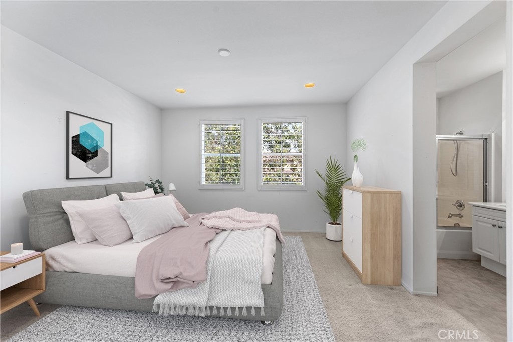 Bright and ready to enhance your lifestyle, this low-maintenance, high-style townhome at Alassio in San Clemente’s master-planned community of Talega is just minutes from work and play. A spacious front patio greets residents and guests, and the main level showcases an open-concept great room with a fireplace, arched windows, built-in cabinetry, custom mirrored wall and a dining area. The kitchen continues the open vibe with a casual breakfast bar, granite countertops, white cabinetry, a spacious pantry, and easy access to a powder room with elegant pedestal sink and an attached two-car garage. Comfortably sized at approximately 1,468 square feet, the two-bedroom, two-and-one-half-bath floorplan places both bedrooms on the second floor near a convenient laundry room. Relax and refresh in dual primary suites with walk-in closets and an ensuite baths with dual sinks. Alassio's resort-caliber pool, spa, sauna, clubhouse and BBQ area are located close by, and Talega’s world-class recreational attractions include an 18-hole championship golf course, a swim club, parks and hiking trails. Award-winning schools, major shopping centers, and San Clemente’s famous beaches are merely minutes from home.