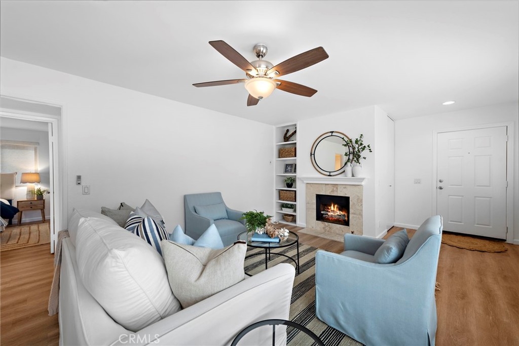 Welcome to this ideally located seaside condo in the heart of San Clemente’s renowned Pier Bowl neighborhood—just steps from the beach, the San Clemente Pier, and the scenic Beach Trail. Enjoy close proximity to renowned surf spots including T-Street and Trestles, as well as local parks, the Historic Casa Romantica cultural center and garden, restaurants, and shopping. This private, single-level residence is located on the main floor for easy access and features 2 bedrooms and 2 bathrooms. The updated kitchen includes newer cabinetry, quartz countertops, a breakfast bar, and a dining area. The living room offers a cozy atmosphere with a fireplace, ideal for relaxing or entertaining. Additional features include light wood flooring, updated lighting, and fresh interior paint throughout. The spacious primary suite includes a private bathroom with both tub and shower, while the second bathroom has been recently remodeled. Residents also enjoy easy access to a shared sun deck, ideal for outdoor lounging or gathering. Just across the street, Linda Lane Park offers green space and a playground. This home is within walking distance to downtown Avenida Del Mar with its variety of dining, boutiques, and seasonal community events. 3 different accesses to the beach and beach trails. Includes two parking spaces, one of which is in a gated underground garage. The HOA covers water, trash and sewer.
