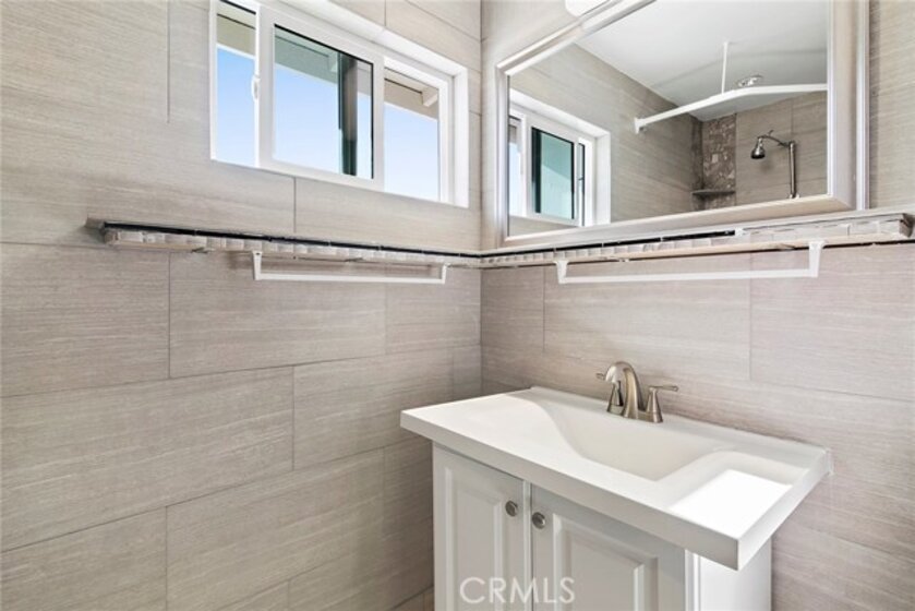 Located within two blocks of the beach, this home in Bay Cliff Village North, an upscale senior community, is conveniently situated near shopping and entertainment. This recently remodeled home features a modern kitchen, an under counter wine cooler and new quartz counter tops and white wood cabinets. Drop down lighted hood. Perfect for entertaining. An white fireplace graces the living room. Wood plantation shutters and double panes windows in living room and master bathroom. Recessed lighting in entry and living room.This two bedroom, two bath home boasts an open, airy floor plan with abundant storage in hallway, laundry, and bedrooms. A detached single car garage provides additional storage. A large open patio with fountain is ideal for entertaining. The bathrooms are updated. Live by the beach.