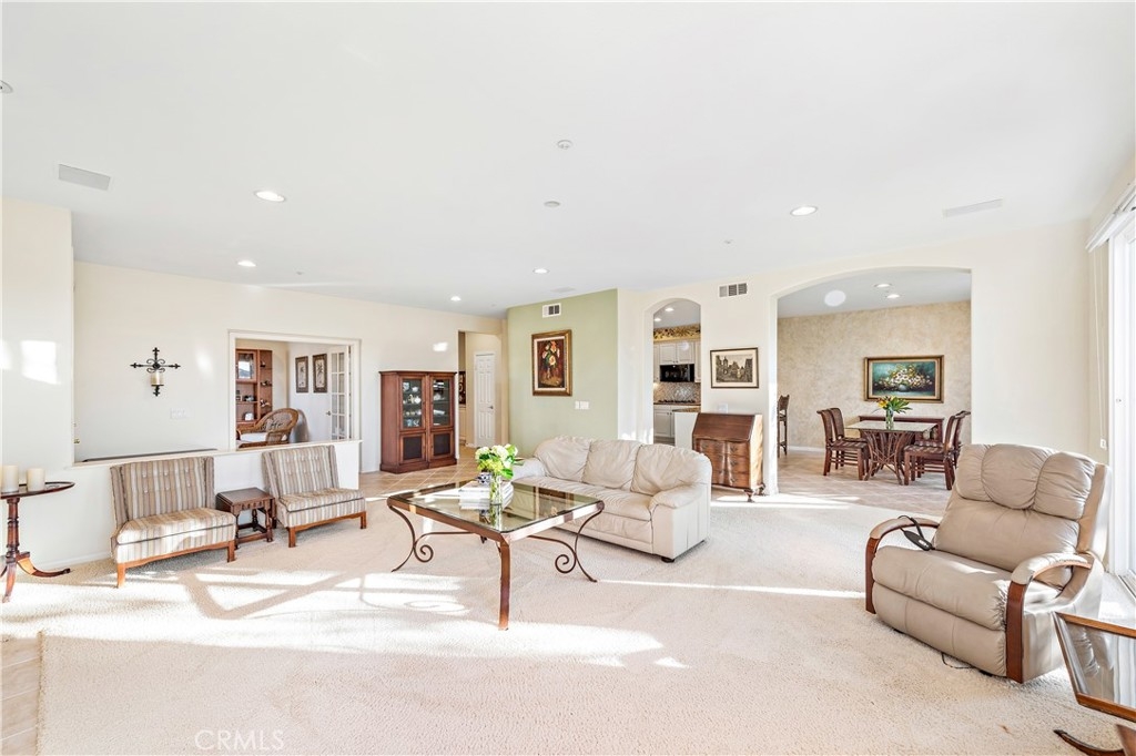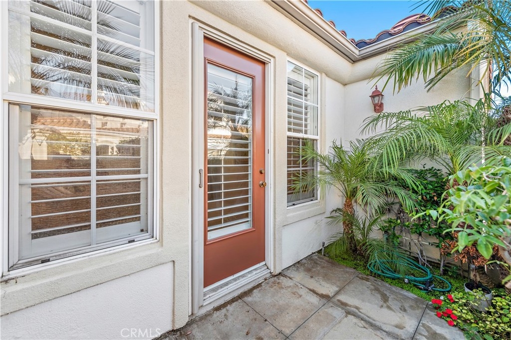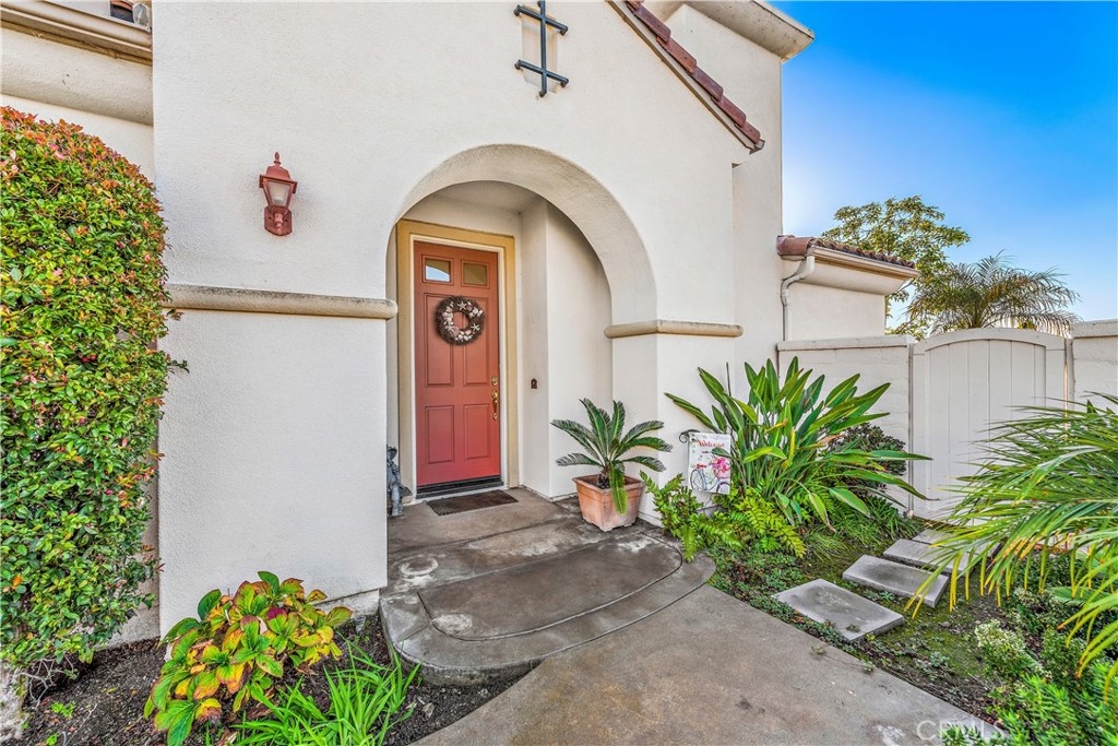 Enjoy the best of attached-home living at this elegant Carmel residence in San Clemente’s Talega community. Sharing only one wall with its neighbor, the spacious single-level home offers the ambiance of a detached design that is enhanced by a premium corner location with a private side entrance. Approximately 2,050 square feet, the extra-bright and open floorplan complements immaculate living areas with high ceilings, large windows, distinctive archways, plantation shutters, custom paint and upgraded tile and carpet. Entertain or simply relax in a living room with media niche and fireplace that opens to a beautiful back patio with meticulously groomed rose bushes. The dining room flows directly from the living room and joins a generously sized chef-inspired kitchen complete with white cabinetry, granite countertops with full backsplash, a pantry, breakfast bar and deluxe appliances. Two bedrooms and two baths are joined by an office that can easily become a third bedroom, and the primary suite displays a walk-in closet, ensuite bath and a private patio. An attached two-car garage and whole-house no-maintenance Halo water filtration are included. Carmel reveals a private resort-inspired recreation center with pool and spa. Throughout master-planned Talega awaits miles of hiking trails, a broad spectrum of shopping and entertainment centers, a championship golf course, swimming, sports parks and award-winning schools. Sun-drenched beaches are merely minutes away.
