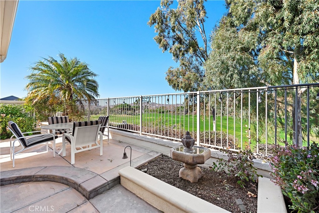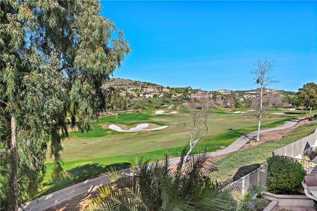 RARE GOLF COURSE VIEW home with beautiful sunset views. Sitting on your patio can become your favorite pastime. Watch golfers or enjoy a glass of wine. The ambiance of the rear patio will make your summer days fun while you enjoy the view. Keep the patio furniture and BBQ! This immaculate and move-in ready three bed (dual masters), three bath end unit shares only one wall with a neighbor. South facing windows allow natural light into the entire home. Walking in you will feel the spaciousness of the first floor. The second floor offers superior privacy for each bedroom. The lovely curving staircase takes you upstairs to a wide hallway where you will find the conveniently located laundry room which includes the Whirlpool washer and dryer. A bank of cabinets will hold all of your linens. Enter the large master suite, see the huge walk-in closet, en suite bathroom and balcony overlooking the golf course. The second bedroom has an en suite bathroom as well, walk-in closet and a private balcony with hill views. Downstairs the third bedroom is perfect for a visitor or older child. The kitchen is roomy with a walk-in pantry, clean GE refrigerator, breakfast room including the breakfast set and Vizio TV. The front patio could be turned into a gardeners paradise. The Carmel has its' own pool. Talega is an active area with hiking and biking trails, swimming pools, a clubhouse and a Fred Couples designed golf course. all available for residents. Shopping is nearby.