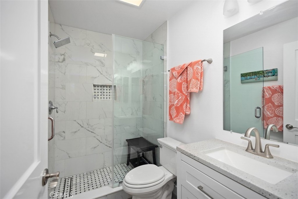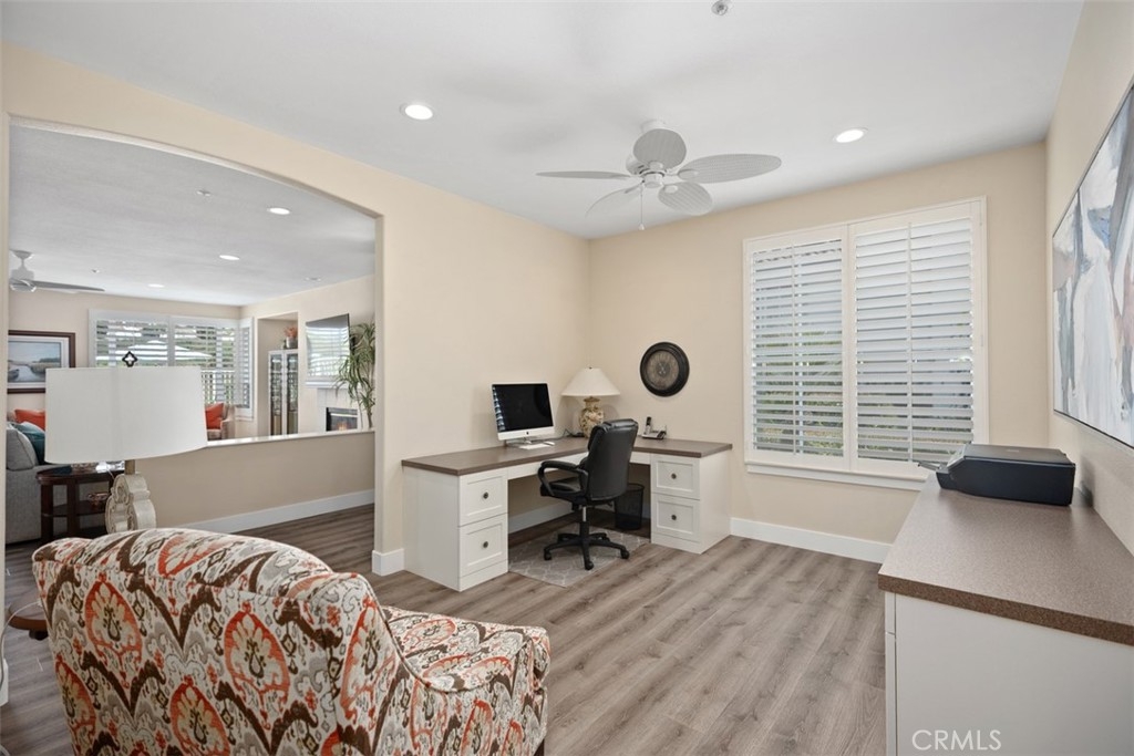 Recently REMODELED this immaculate SINGLE LEVEL home blends on-trend design with an open and inviting floor plan, ideal for both everyday living and entertaining. From the main living areas and backyard, take in tranquil golf course views for a peaceful backdrop to your daily life. The spacious chef’s kitchen features matching Bosch appliances, granite countertops, a 5-burner gas cooktop, and abundant storage. Adjacent to the great room, the third bedroom has been opened and transformed into a light-filled home office with custom built-in desk. The primary suite is a private retreat with its own patio, a remodeled ensuite bath, and a generous walk-in closet. Both the primary and guest baths showcase stylish updates, including walk-in showers, granite counters, and coordinating tile accents. Practical amenities include an indoor laundry room with utility sink, a 2-car direct-access garage with storage cabinets and a sealed floor, plus a newer air conditioner and water heater. Low-maintenance landscaping means more time to enjoy life—front yard care is handled by the homeowner’s association, and the backyard stays pristine with artificial grass. Located in the desirable Talega community, residents enjoy access to a championship golf course, pools, tennis courts, hiking trails, parks, and year-round community events. Just minutes from shopping, dining, and San Clemente’s beautiful beaches, this turnkey home is your chance to live the coastal lifestyle at its best.