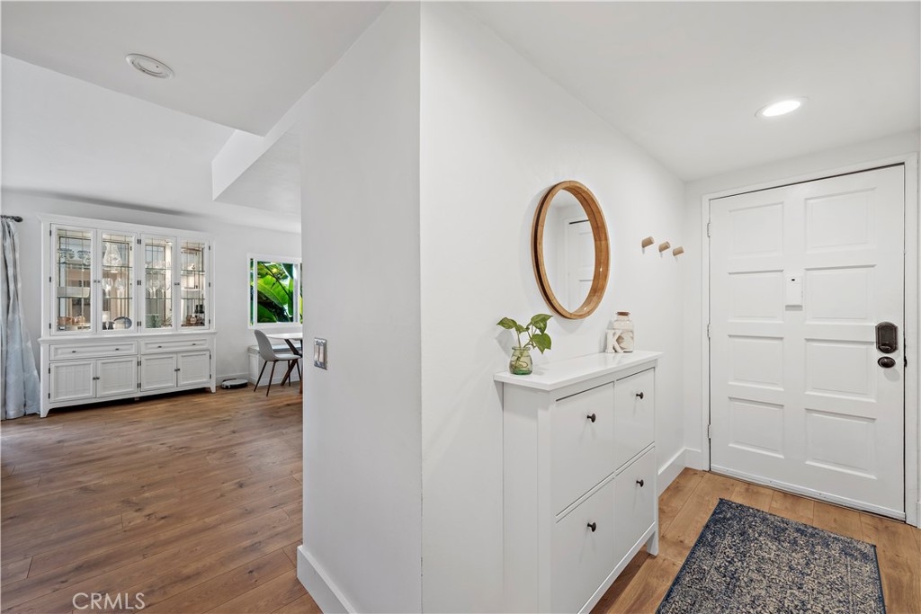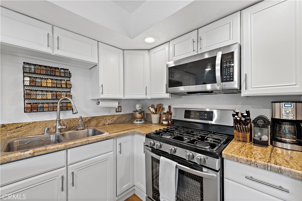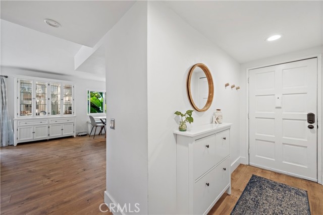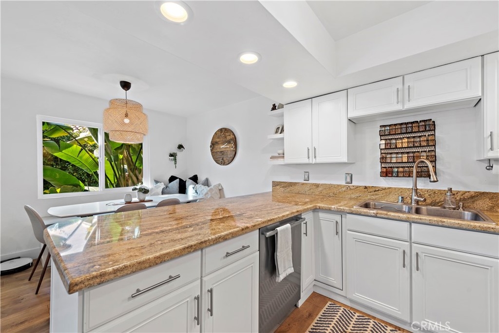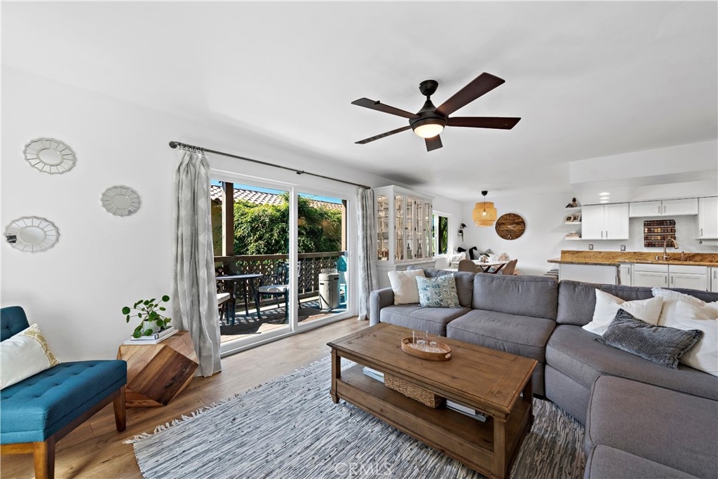 Updated, single level end unit! This is the only unit in the complex that is on the same level as the 1 car garage and 1 carport that come with the unit. No stairs! Quiet, private and with beautiful garden and hillside views. Enter to this 2bd/2ba unit to discover a functional open design radiating a welcoming ambiance and updated with all the latest interior design trends. A plethora of natural light from the updated dual pane windows blends seamlessly with the updated flooring and baseboards throughout. The kitchen showcases granite counters, resurfaced cabinetry and newer appliances. Both bathrooms have been tastefully updated including the vanities. Additional updates include construction casement windows in the living room, closet organization systems, and the building has been re-piped. Furthermore, enjoy a quaint balcony found off the living room and the convenience of indoor laundry. An additional perk is the gorgeous ocean view HOA patio where you can relax and unwind. This is a great cul-de-sac location near easy freeway access, all the fun shops and restaurants on Del Mar, and close to the sun, sand and surf of the famous San Clemente beaches!