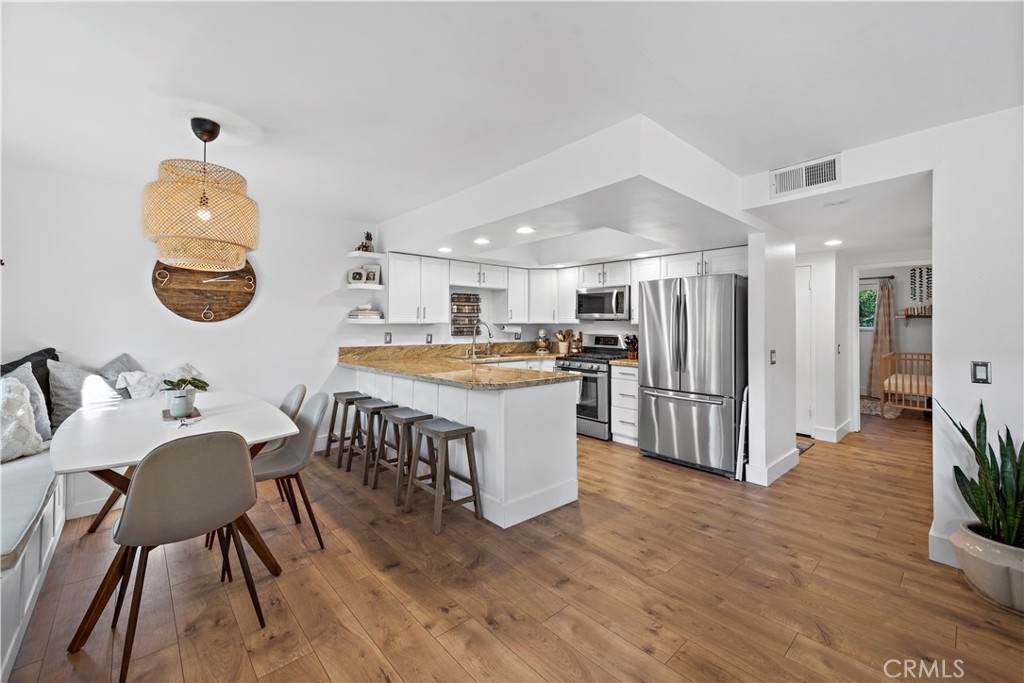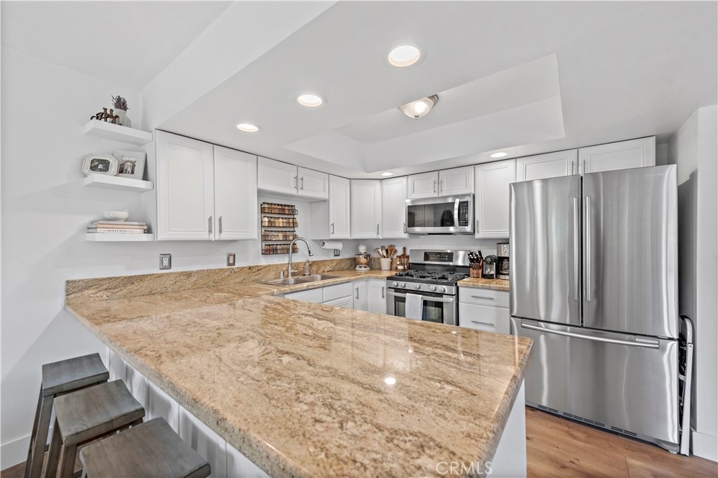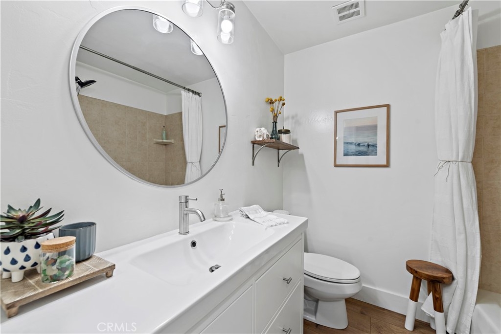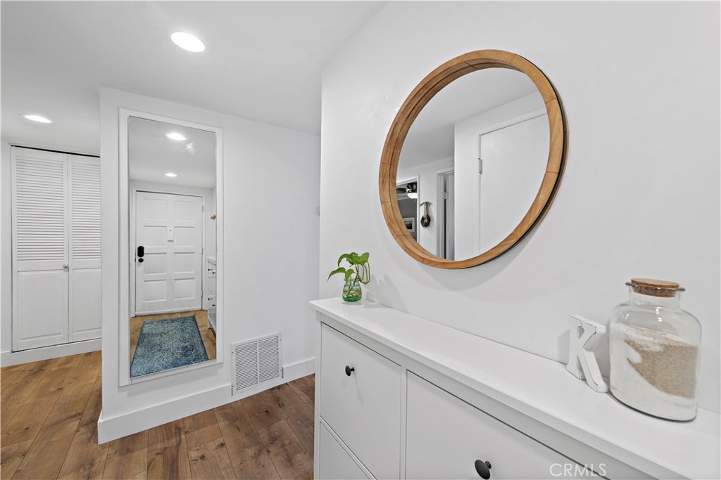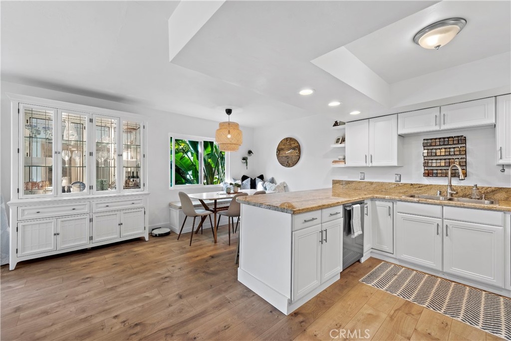 Updated, single level end unit! This is the only unit in the complex that is on the same level as the 1 car garage and 1 carport that come with the unit. No stairs! Quiet, private and with beautiful garden and hillside views. Enter to this 2bd/2ba unit to discover a functional open design radiating a welcoming ambiance and updated with all the latest interior design trends. A plethora of natural light from the updated dual pane windows blends seamlessly with the updated flooring and baseboards throughout. The kitchen showcases granite counters, resurfaced cabinetry and newer appliances. Both bathrooms have been tastefully updated including the vanities. Additional updates include construction casement windows in the living room, closet organization systems, and the building has been re-piped. Furthermore, enjoy a quaint balcony found off the living room and the convenience of indoor laundry. An additional perk is the gorgeous ocean view HOA patio where you can relax and unwind. This is a great cul-de-sac location near easy freeway access, all the fun shops and restaurants on Del Mar, and close to the sun, sand and surf of the famous San Clemente beaches!