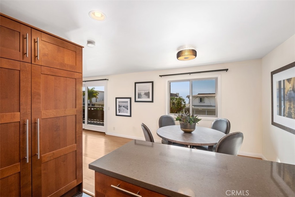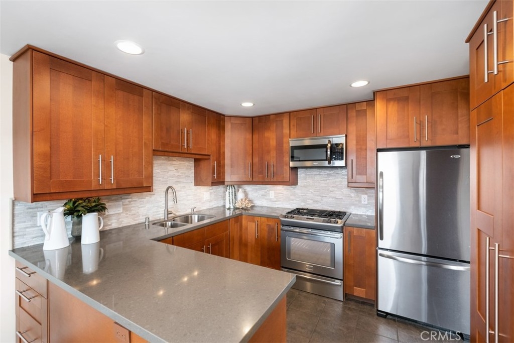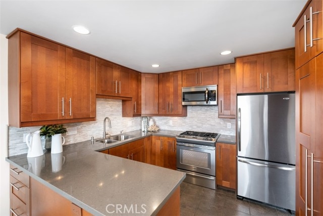 COMPLETELY REMODELED, 2 bedroom, 2 bath condo in a fantastic cul-de-sac location above San Clemente’s historic downtown! This home is ready for you to enjoy living in one of the BEST COASTAL CITIES in Southern California known for its friendly small-town vibe, surfing, golf, popular beach trail, wooden pier - and boasts some of the best weather in the world. The OPEN KITCHEN is thoughtfully remodeled with quartz countertops, undercabinet lighting, soft close drawers, large pantry, lots of cabinets, concealed trash, stainless gas range, microwave, and refrigerator. The dining area is located next to the kitchen with a nice, large window, & a PEEK OCEAN VIEW. Kitchen, living room and dining area is LIGHT AND BRIGHT with skies facing the ocean which can be exceptionally beautiful at sunset. OPEN LIVING ROOM features warm WOOD FLOORS and a large dual paned sliding door leading to the balcony, which is a perfect place for BBQing and relaxing. Newly resurfaced wooden floors in the living room continue throughout the rest of the home. The bathrooms and closet doors are tastefully renovated with modern floating cabinets. Ceramic countertops in bathrooms have integrated sinks and stylish back splashes. NEW INTERIOR PAINT! Very clean. An enjoyable feature is the ceilings in the kitchen, dining area, living room & bedrooms have been SOUND PROOFED to help create a quieter living environment. An EXTRA LAYER OF DRYWALL was added on the 1 common wall to minimize sound. The owners have truly done everything to make this condo wonderful. All windows and slider were replaced w/ ENERGY EFFICIENT DUAL PANED WINDOWS. Space saving “Two-in-one” washer/ dryer is conveniently located inside the home. This is the LARGER FLOOR PLAN in Brisas Del Mar. ONE CAR GARAGE with LOTS OF STORAGE AND SURF RACKS has a remote-controlled garage door opener. And unlike many condos in San Clemente, 214 Via Robina has PLENTY OF PUBLIC STREET PARKING for you and your guests. Community has lush landscaping. Roof was recently replaced, and buildings were fumigated. LOW TAXES AND NO MELLO ROOS! HOA pays for water & trash. Close to downtown, boutique shopping, San Clemente Outlets, great restaurants, the beach, pier and beach trail. Be sure to view the 3D walkthrough to see all this condo has to offer or better yet, see it before it is sold.