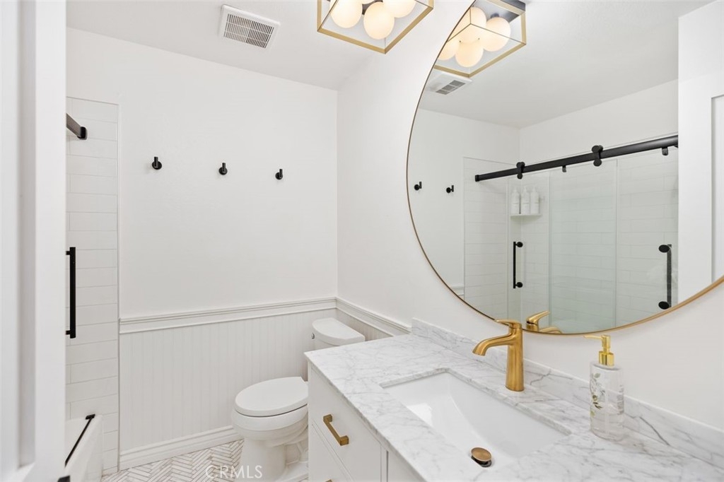 Welcome to your new home by the beach! This 2 bedroom, 2 bath condo in the heart of San Clemente has been completely remodeled with all new recessed and custom lighting, solid wood doors throughout. Both bathrooms have been fully remodeled with calcutta marble and quartz countertops, high end fixtures, designer toilets and custom mirrors. The remodeled kitchen has granite counters, stainless steel appliances, marble back splash and soft close cabinets and drawers. All new Pella windows, slider and smart-home thermostat. High end wood laminate flooring throughout. This property is completely turnkey, all you have to do bring your beach chairs and towels! Central to Downtown San Clemente, the pier and all the beautiful beaches of San Clemente.