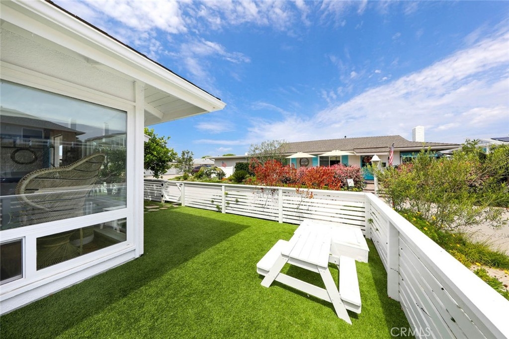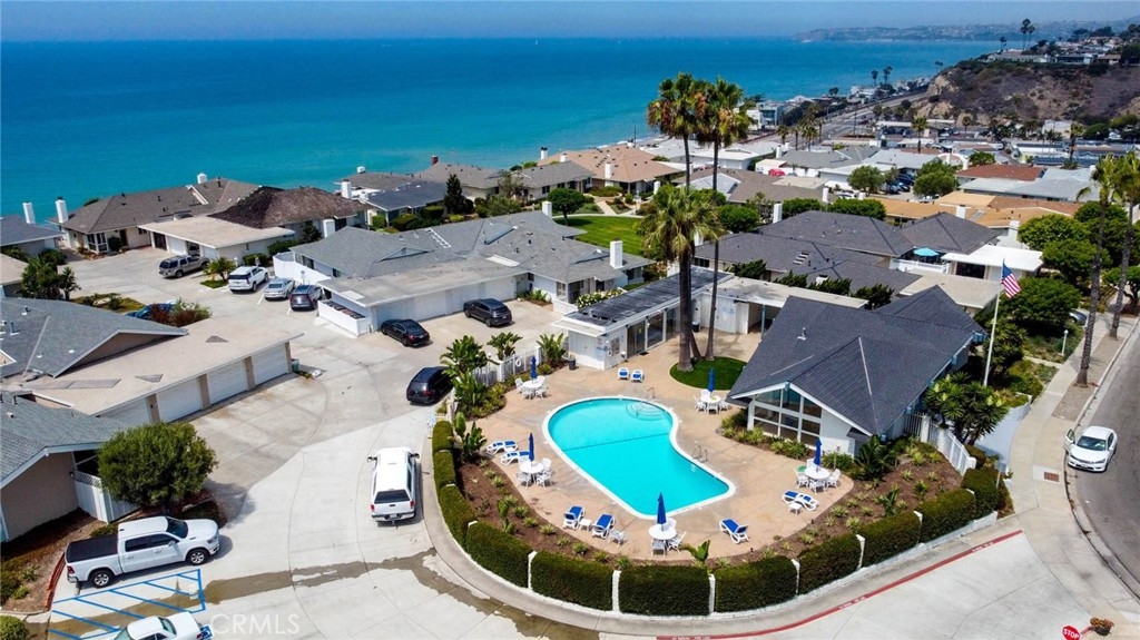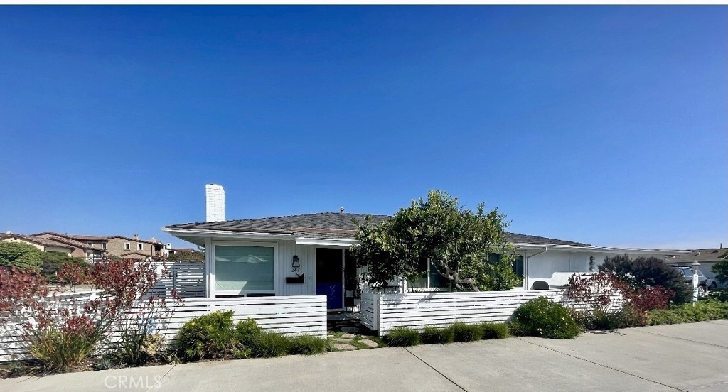 SPECTACULAR MID-CENTURY COASTAL! Perched high above the Pacific Ocean in one of the most desirable areas along the Orange County Coast, this Wonderful Two Bedroom/ Two Bath Single Level Home embodies Seaside Bliss. Fantastic Curb Appeal with "Eichler" inspired Horizontal Fencing on a wrap around lot with welcoming Bright Blue Dutch Door that invites all to enter. Perfectly located on a Private Corner, naturally creating expanded outdoor space while adding to the exterior beauty. Newly landscaped with Large Format Tile, Synthetic Turf, fruit trees, and local plantings giving this Home that calming "Coastal Flair". Upon entering you will be immediately impressed by the ample windows, open floorplan, clean simple lines, and the integration of Indoor and Outdoor Space. Classic Saltillo Floor Tiles blend perfectly with Sleek White Quartz Countertops and Trendy Black and White Porcelain Tiles enriching the Kitchen and Fireplace Surround. You will love the all-inclusive large Open Concept Living Area which provides great flow, functional space, high ceilings, and great light; Living Area is open to Dining and Kitchen with convenient Breakfast Bar and Designer features throughout. Kitchen boasts New White Gloss KitchenAid Appliances, Quartz Countertops, Crisp White Cabinets, and Polished Gold Hardware. Serene Master Suite with Wood-Look Porcelain Tile Floors, Gauzy White Cotton Drapes, and loads of Closet Space. En-suite Bath is stunning with Distressed Wood Double Sink Console, Porcelain Sinks, and Matte Black Fixtures. Second Bedroom with Built-in Cabinets and Guest Bath completes the interior of this Darling Home. Step outside to Entertainers Backyard with an abundance of outdoor space, great for Family get togethers, a game of "Corn Hole" or simply relaxing with Friends. Convenient indoor Laundry and One Car Garage located directly behind Home with plenty of surrounding Guest Parking. Watch the Sun set over the Breaking Waves from the many Ocean View seating areas in this Seaside Community. All Homeowners enjoy Association Pool, Spa, and Clubhouse. Great location right across from Poche's Beach. Bike to nearby San Clemente Del Mar Street for Dining and Shopping or spend the day at Renown Dana Point Harbor. Easy access and just minutes to 5 Freeway.