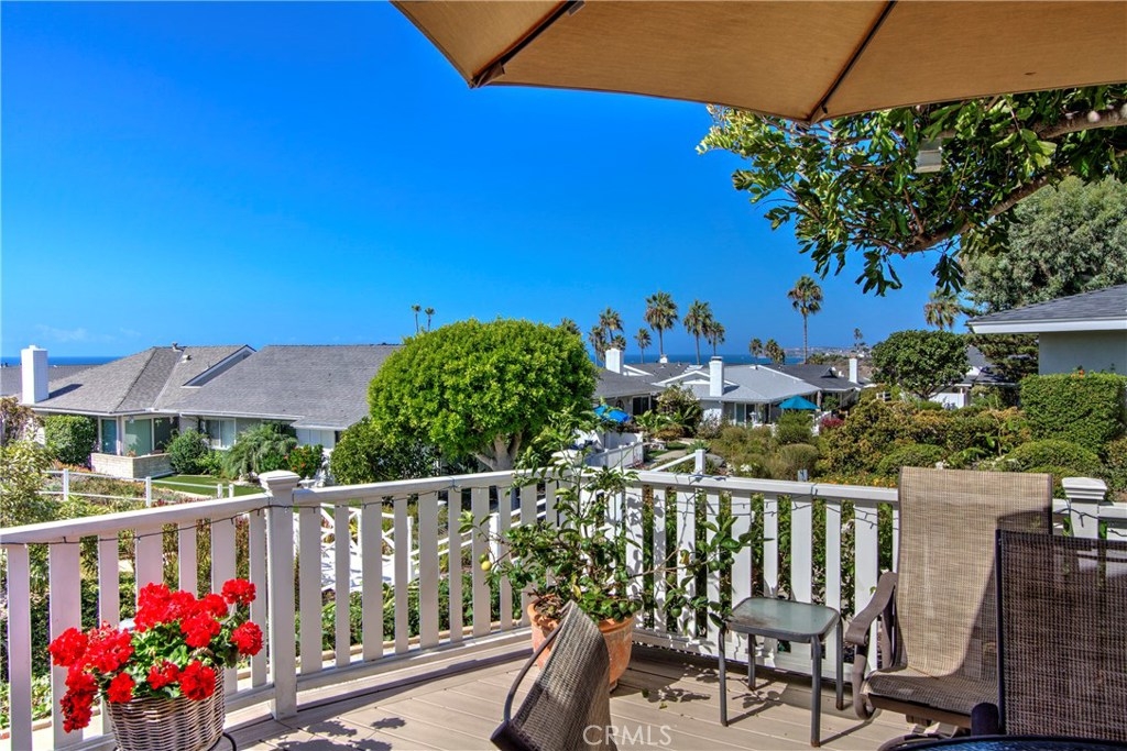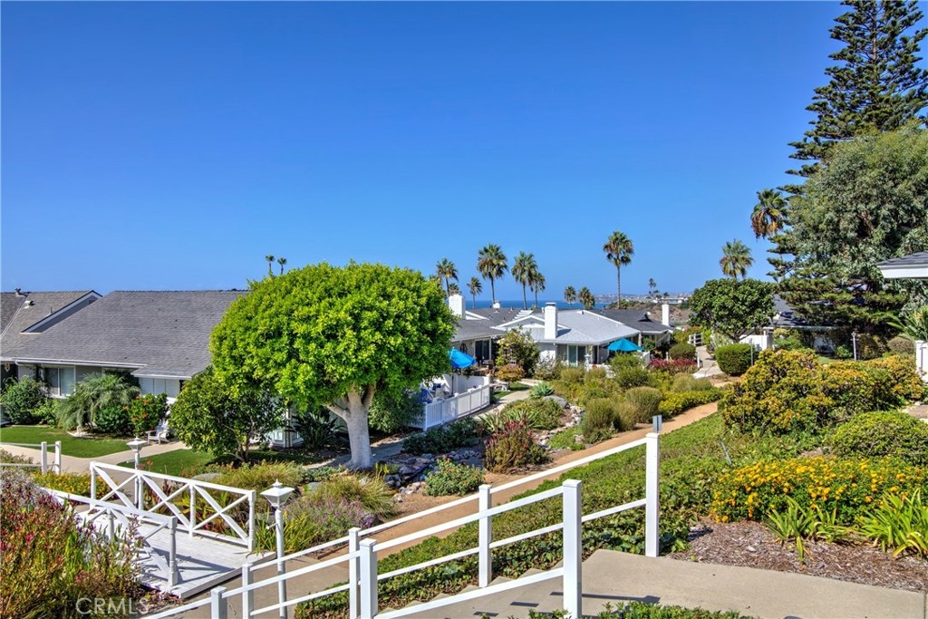 The blues of the pacific ocean, glistening night lights and fiery setting sun are the backdrop for this beautiful remodeled residence. This charming, two bedrooms, two bathrooms plus den home overlooks a lush open area that provides a private picturesque setting. The interior of this home is highlighted by the exceptional open kitchen featuring butcher block island, soft close cabinets and drawers and custom touches. The expansive view oriented deck is perfect for entertaining as well as for one's relaxation. Residents of this 55+ community enjoy a pool, clubhouse open areas and social functions. One block away are beautiful beaches perfect for water sports, leisurely walks or relaxing moments. Minutes to downtown shops, restaurants, beach trail, golf, and Dana Point Harbor