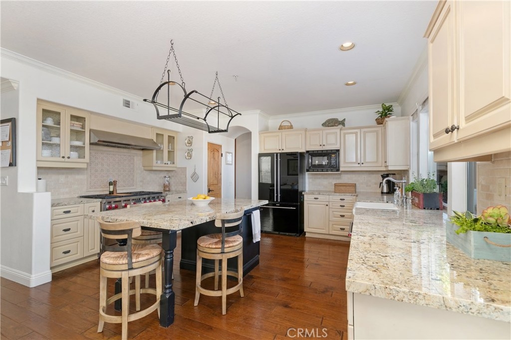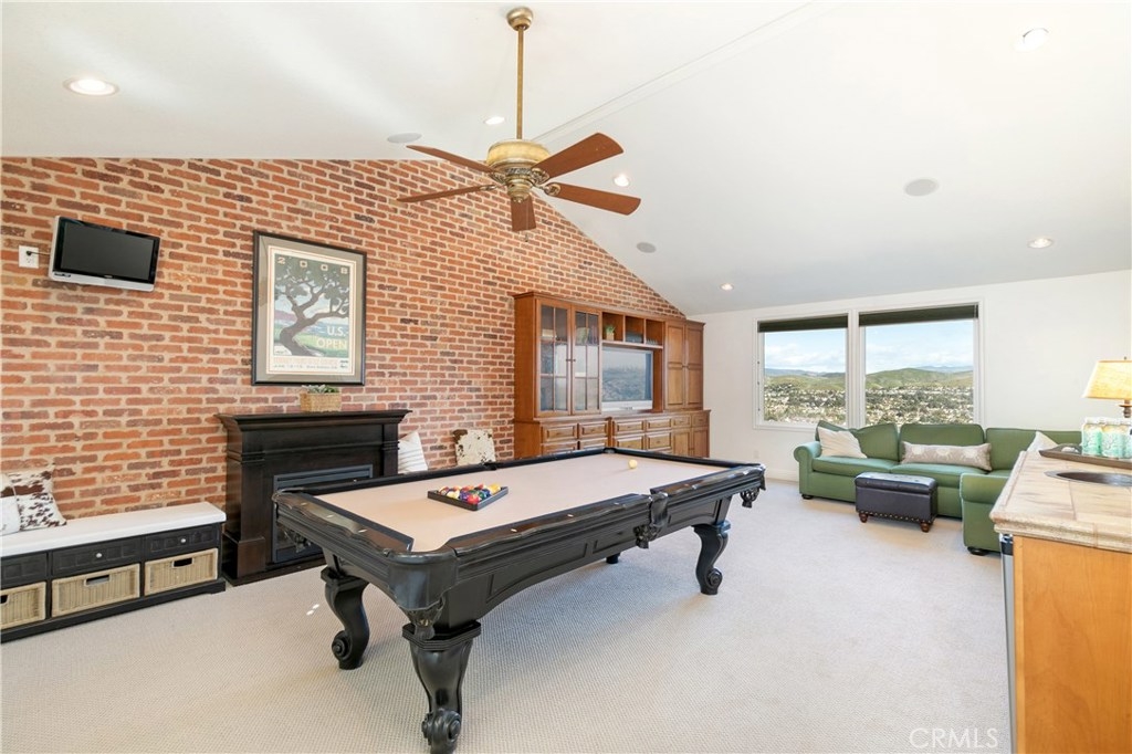 Over 3500 sq.ft of comfortable living is a dream come true and is approximately 1.5 miles "as the seagull flies," from sandy beaches, and the Pacific Ocean. Del Cabo Estates is the only private gated community in Forster Ranch, known for it's top rated schools. Breathe in the freshest ocean breezes, while overlooking the entire coastal valley. This home boasts a 3 car garage and 3 car driveway. Imagine coming home to your 4 bedroom home, with a super sized bonus room featuring views in both directions, & a dramatic used brick feature wall, deluxe built in entertainment cabinet, lounge area, wet bar, vaulted ceilings, and a pool table! The back yard features that same architectural brick, with a built-in gas fire pit and a pebble-tec saltwater private pool & spa. The remodeled kitchen includes the 48" Wolf range you've been dreaming of. The spacious family room with great natural light and an amazing rockscape fireplace makes this home really welcoming. The dining room includes distressed beams, and a view over the pool to the hills beyond. The formal living room has vaulted ceilings and a gorgeous fireplace. The main floor includes a full bath, and laundry room. Luxurious hand scraped wood & stone flooring downstairs, and all new carpet upstairs. The master bedroom suite has it's own romantic fireplace, vaulted ceilings, and an ocean view deck, featuring composite decking.