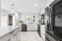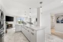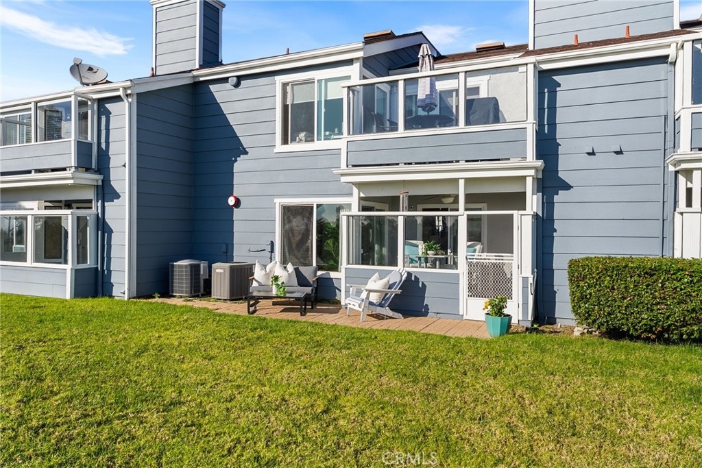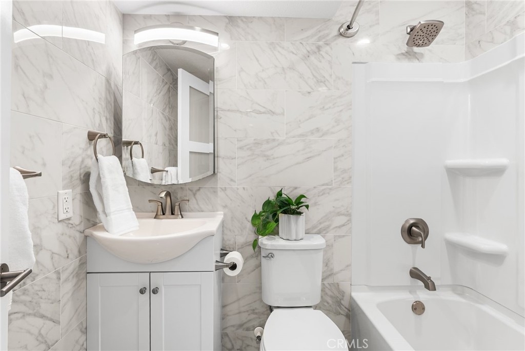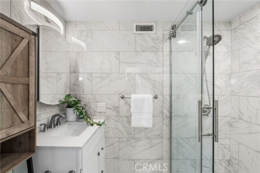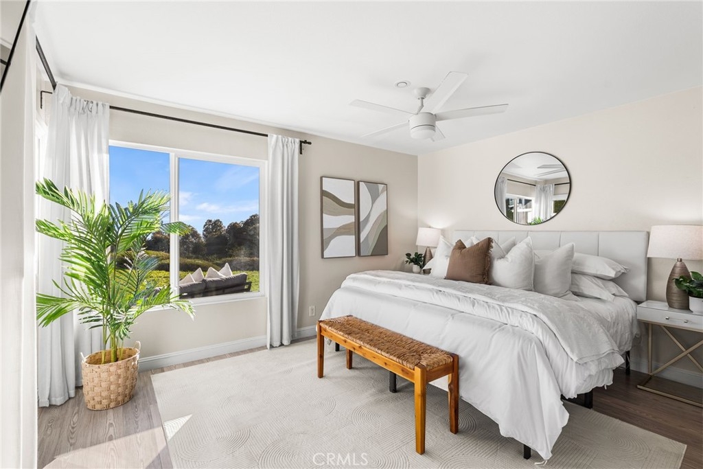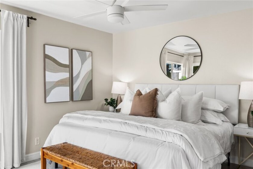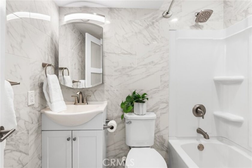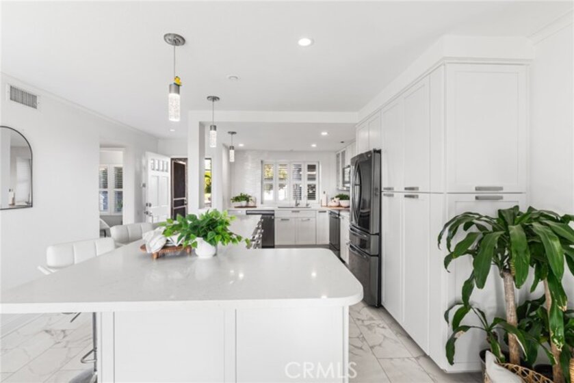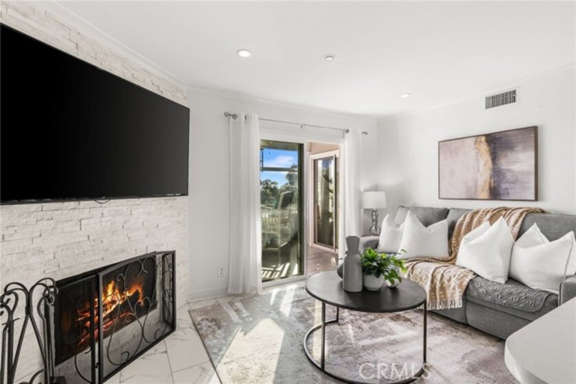 Panoramic ocean views and a top-to-bottom remodel set this ground-level, one-story condo apart as one of the finest homes in Faire Harbour at Marblehead. Enjoy sweeping vistas to Catalina Island, twinkling city lights, glowing sunsets, and a lush, expansive greenbelt—beautifully showcased from a custom-enclosed patio plus an adjoining outdoor patio that create an ideal indoor/outdoor entertaining experience. Inside, thoughtfully reconfigured living spaces deliver an open-concept layout with two bedrooms and two fully upgraded baths across approximately 984 square feet. The virtually custom kitchen is the centerpiece, featuring quartz countertops, an L-shaped island with bar seating, white Shaker cabinetry, a pantry for extra storage, and new stainless-steel appliances. A stylish corner fireplace anchors the living room, which flows seamlessly to the patios for effortless coastal living. Both bathrooms have been completely refreshed with floor-to-ceiling tile and newer fixtures. The ocean-view primary suite is a true retreat with patio access and a walk-in closet enhanced by built-in organizers. Additional highlights include luxury vinyl tile flooring, new contemporary lighting, a guest-room Murphy bed, washer and dryer, and a newer water heater. Completing the package is a detached, fully enclosed and finished two-car garage with extensive cabinetry for exceptional storage. Faire Harbour residents enjoy rolling coastal hills, abundant open space, a sand volleyball court, and a resort-style pool and spa. Conveniently located across the freeway from the Outlets at San Clemente—offering luxury theaters, premium shopping, yoga, a bakery, and dining—this home is also just minutes from beaches, excellent schools, and San Clemente’s iconic pier.