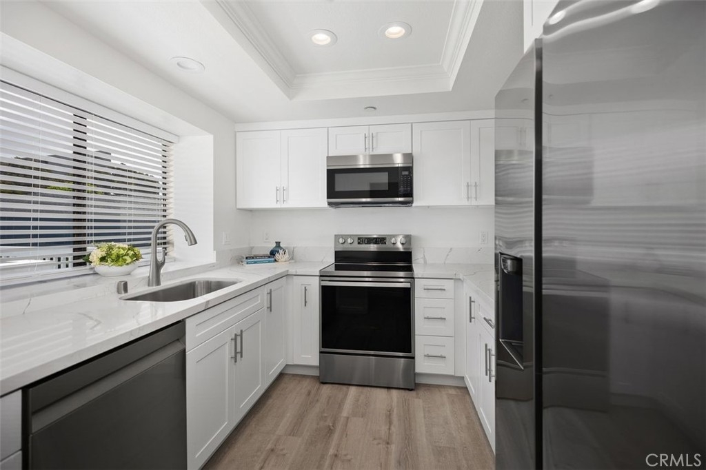 COME LIVE THE DREAM LIFE IN COASTAL SAN CLEMENTE. THIS STUNNING UNIT HAS BEEN COMPLETELY REMODELED AND OFFERS 2 FULL BEDROOMS, 2 FULL VANITIES, BEAUTIFUL BALCONY WITH UNOBSTRUCTED OCEAN VIEWS AND 2 CAR GARAGE. LOCATED IN THE EVER POPULAR COMMUNITY OF FAIRE HARBOR IN SAN CLEMENTE. THIS PROPERTY CHECKS OFF ALL THE BOXES WITH A BRAND NEW KITCHEN FEATURING RECESSED LIGHTING, SOFT CLOSE CABINETS/DRAWERS, NEW APPLIANCES, FRESH NEUTRAL COLORS. EXPANSIVE OCEAN VIEWS FROM SEVERAL AREAS. A VERY PRIVATE BALCONY OVERLOOKS A GREENBELT ACCOMPANIED BY OUTSTANDING VIEWS FROM SAN CLEMENTE AND DANA POINT TO CATALINA ISLAND. AMENITIES INCLUDE A COMMUNITY POOL, SPA AND SPORT COURT. LIVING IS A SINGLE LEVEL UNIT AFTER A SHORT FLIGHT OF STAIRS THAT LEADS TO THE FRONT DOOR. POISED FOR A QUICK SALE UNDER A MILLION DOLLARS IN THIS FOREVER COMMUNITY. SAN CLEMENTE EVOKES THE COASTAL LIFESTYLE OF OUTDOOR HIKING, BIKING, OCEAN ACTIVITIES AND POPULAR BEACHES. EXCELLENT LOCAL THEATRE, SHOPPING, FARMER'S MARKET AND RESTAURANTS ALL WITHIN A FEW MILES. SMALL TOWN VIBE WITH A BIGGER THAN LIFE VALUE. THE CITY IS COMMUTER FRIENDLY WITH TRAIN LINES SERVICING SOUTH TO SAN DIEGO AND NORTH TO L.A. THE YEAR ROUND CLIMATE CREATES A TRULY TREASURED PLACE TO CALL HOME. UP THE COAST IS THE NEWLY RENOVATED DANA POINT HARBOR, WORLD CLASS RESORTS AND CATALINA EXPRESS TO THE ISLAND. HOA DUES INCLUDE WATER. STREET PARKING AVAILABLE WITH A PERMIT. FAIRE HARBOR COMPLEX WAS RE-PIPED. UNIT HAS ALL NEW APPLIANCES, HVAC, PAINT, FLOORING. Seller, seller's agent and broker have not verified information in this MLS listing and have relied on public sources of data. Buyer and buyer's agent are strongly advised to perform their independent inspections and verify all information, including square footage, lot size, and property features to their satisfaction.