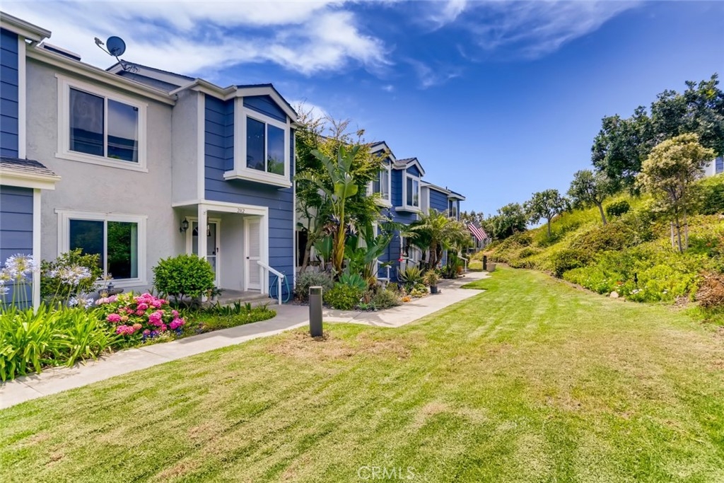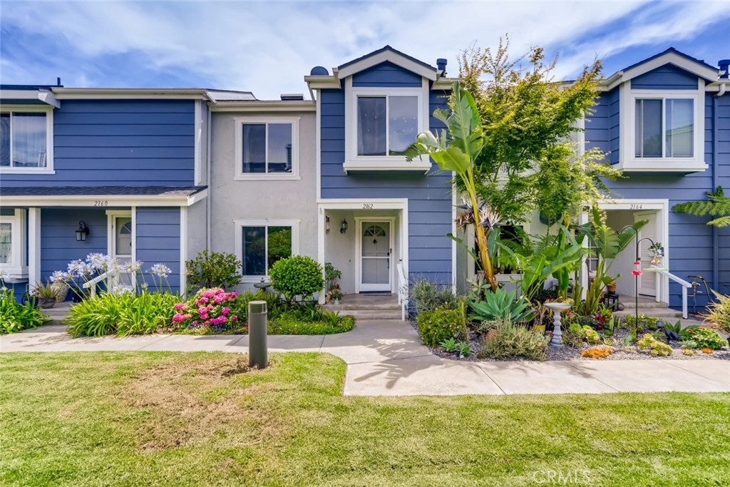 Welcome to this upgraded two-story unit in the highly desirable Faire Harbour community of Marblehead. This home has a perfect location within the community, off the street with a greenbelt in front. and nobody above or below. Featuring an upgraded kitchen with quartz countertops , custom backsplash and attached dining area. The open concept family room has a gas fireplace, recessed lighting and extends outside to the sunny patio. The dual pane windows and patio doors flood this home with warmth and natural light throughout. This home has tons of storage and an upstairs laundry area and also a two-car detached garage. New carpet throughout the upstairs bedrooms and the master suite has a huge walk-in closet, peek-a-boo ocean view, and sunny skylight in the master bath. This unit has been re-piped too! Faire Harbour is close to the beach and shopping and the community has a sand volleyball court, and pool/spa.
