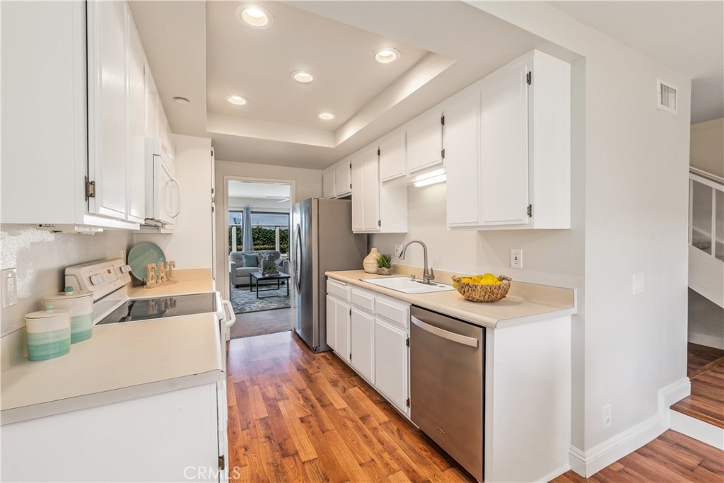 Perched in the hills of San Clemente, this well designed townhome offers resort living at its finest! This home features a desirable floor plan, and a convenient central location. Completely private, this 3 bedroom, 2.5 bath townhome is elegant, sophisticated and clean. The downstairs features a spacious living room with a crackling fireplace, opens to the kitchen, is completely private, and has access to the back patio. The back patio is adjacent to a community maintained green belt, and the Faire Harbor community offers some of the best amenities of any community in South County. This one WILL NOT last, hurry!!!