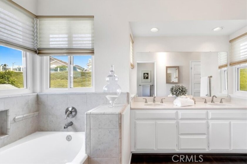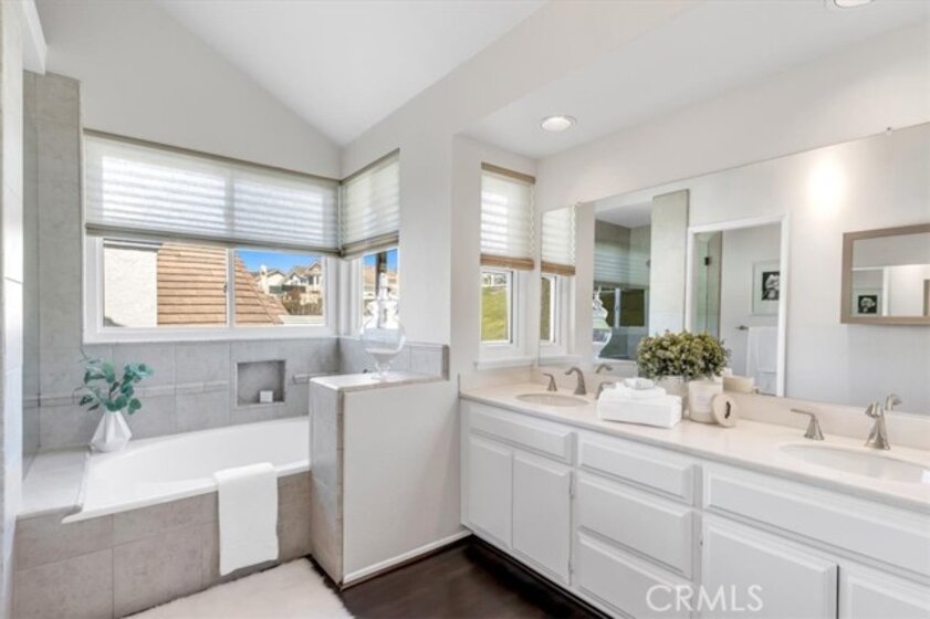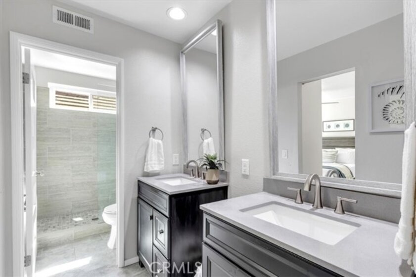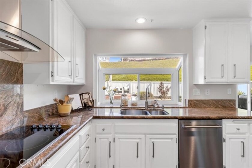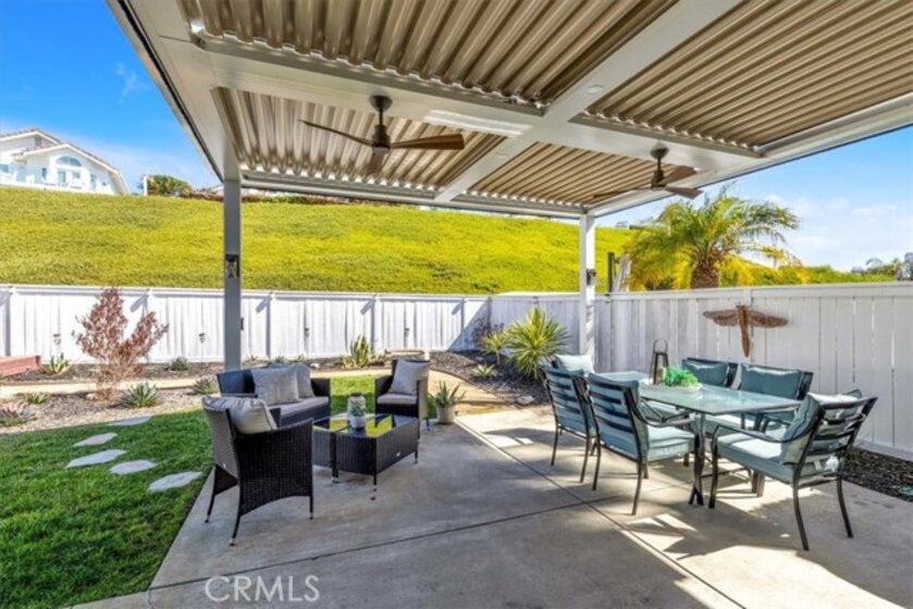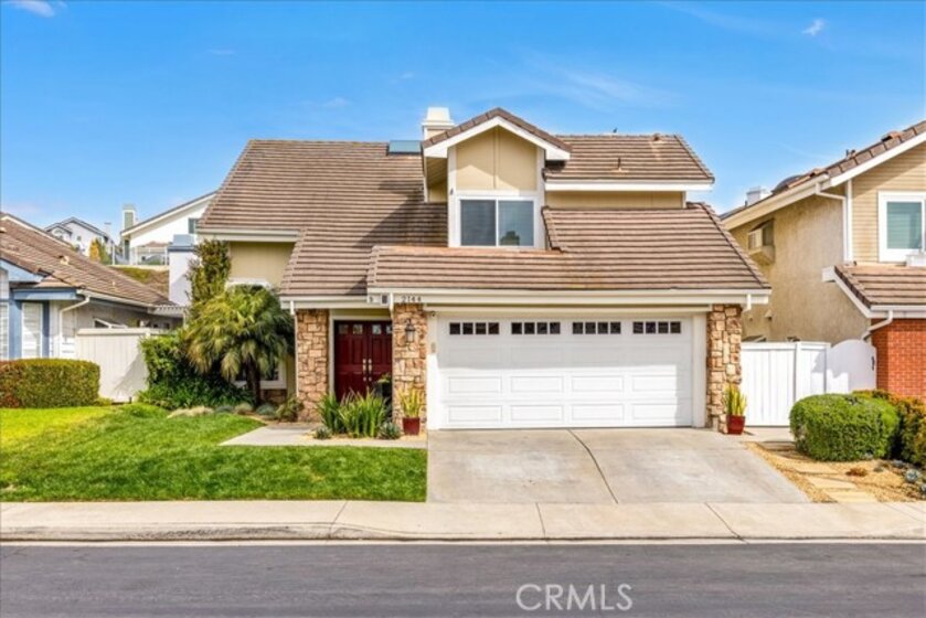 Welcome to 2144 Camino Laurel - a beautifully updated coastal residence tucked behind the gates of Marblehead, one of San Clemente’s most popular private communities. Ideally positioned in the Highland Light Village neighborhood and offering the largest floor plan, this 4-bedroom, 3-bathroom home spans approximately 2,435 square feet of light-filled living space designed for both refined comfort and effortless entertaining. A dramatic entry with soaring ceilings and expansive windows fills the home with natural light and highlights its open, airy layout. Formal living and dining spaces create an elegant setting for gatherings, while the remodeled kitchen - featuring crisp white cabinetry, stainless steel appliances, and generous prep space - flows seamlessly into the inviting family room for relaxed everyday living. A highly desirable main-level bedroom and full bath offer exceptional flexibility for guests, multigenerational living, or a private home office. Upstairs, the spacious primary suite serves as a peaceful retreat with vaulted ceilings, dual vanities, soaking tub, separate shower, and private water closet. Two additional bedrooms share a beautifully remodeled Jack-and-Jill bath, enhanced by a charming peek ocean view. The backyard is thoughtfully designed for true indoor-outdoor living, featuring a spacious patio for dining and lounging plus a generous grassy area - ideal for play, pets, or gardening. A custom patio cover with a fully adjustable louvered ceiling lets you control sun and shade throughout the day and even enjoy the space during rainy days, creating a comfortable outdoor extension of the home year-round. Extensive improvements include engineered hardwood flooring, updated windows, newer exterior doors, fresh attic insulation, whole-house water filtration, leased solar, and a redesigned irrigation system — reflecting pride of ownership and turnkey condition throughout. Set within the secure guard-gated enclave of Marblehead, this home offers exceptional privacy yet it is still just minutes from beaches, world-class surf, scenic trails, Dana Point Harbor, top-rated schools, shopping, dining, and the vibrant charm of downtown San Clemente. Your best life starts here!