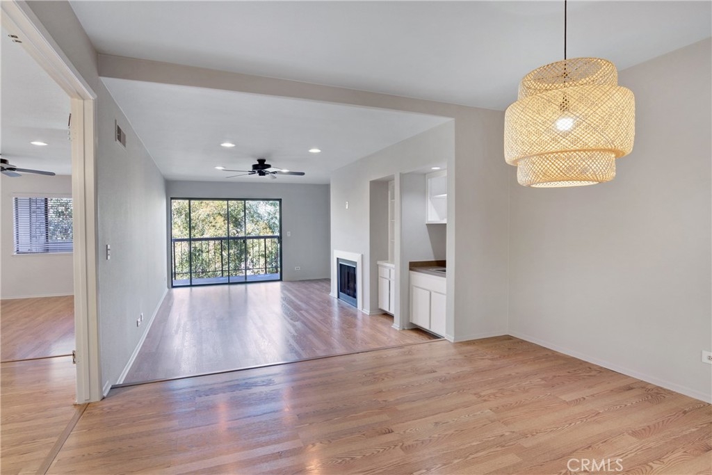 Resort style living walking distance to the beach! This upgraded Southwest San Clemente Horizons 2nd level condo is directly accessed with no steps to the front door. The upgraded kitchen includes custom cabinetry, stainless steal appliances and stone counter tops. The kitchen leads to an open floor plan living and dining area that is accented by a fire place and sliding glass door to your private balcony with canyon views. The large primary bedroom provides an upgraded ensuite bath with a barn door. Additionally, the home includes a secondary bedroom, bathroom and laundry closet. The community amenities include: spa, sauna, BBQ's and large common patio.