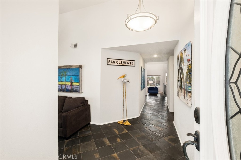 One of the best kept secrets in San Clemente with location and privacy. Look no more! In the gated community of Las Marias, with 23 homes overlooking Shorecliffs Golf Course. Located on a single loaded street this lovely cul de sac home is waiting for you to enjoy. The newly painted home features three-bedrooms and two baths with 2410 square feet of living space. As you enter this home, you will find the main floor living room with fire place and wet bar, kitchen with nook area, dining and family room, along with the master bedroom with a balcony. The main floor has slate as well as custom tongue and groove hardwood flooring throughout. The kitchen dazzles with granite countertops, custom backsplash, Thermodor 5 burner cooktop and a Zephyr range hood. In addition, there are two downstairs bedrooms and a newly carpeted bonus area & garden room (permitted) of approximately 561 square feet. Enjoy your stunning views overlooking the 16th fairway while relaxing on your spacious outdoor patio or your upstairs balcony. This home is close in proximity to world renown beaches, shopping, restaurants, Dana Point Harbor, and more. Low HOA to maintain the front yard and common area. No Mello Roos. Move in ready for you!