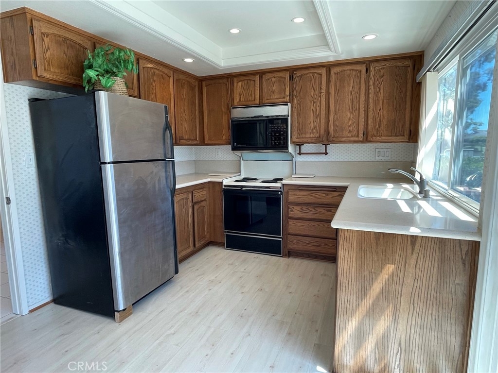 Highly Sought-After END UNIT in Mira Costa Villas – Just 3 Blocks to the Beach! The Double Door Entrance Creates a Spacious and Welcoming Entry to this 3 Bedroom, 2 Bath, Two-Story Home. The Open Floor Plan offers a Main Floor Bedroom/Office with Built in Bookshelves and a Full Bathroom. Features include Vaulted Ceiling, New Paint, some New Flooring, Kitchen with Lots of Cabinets, Dining Room and Living Room with Sliding Glass Doors to a Large Private Patio. Upstairs is a Huge Master Suite with Vaulted Ceiling and Walk-In Closet plus an Additional Bedroom with Connected Vanity Access to Bathroom. There’s also a 2 Car Attached Garage with Lots of Storage and Washer/Dryer Hookups. This Community offers Lush Landscaping, a Community Pool, Spa, Park and Playground. Convenient to Shopping, Entertainment and Freeway.