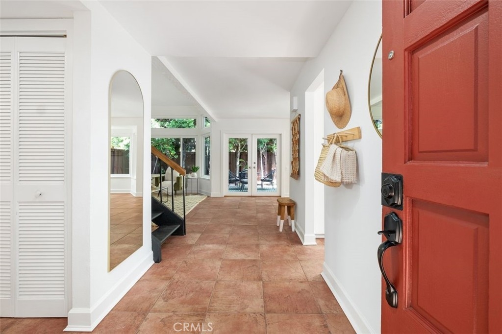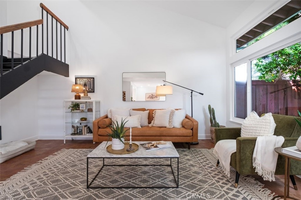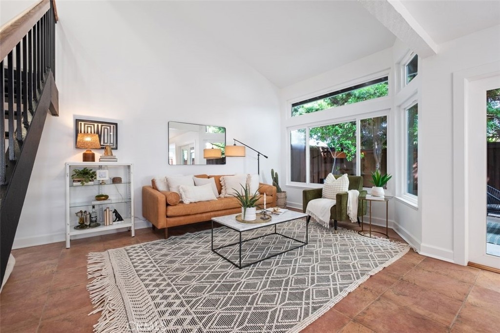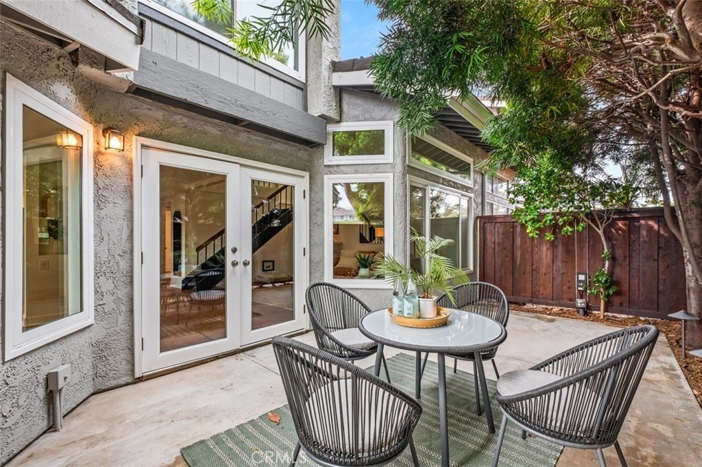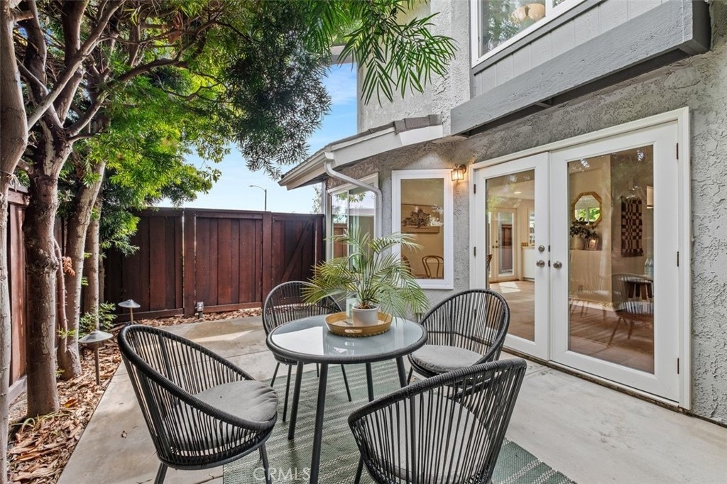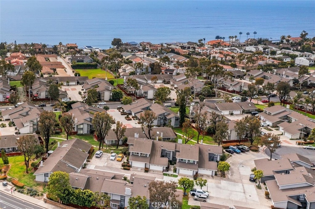 Beach-Close Bliss! Nestled in a prime end-of-cul-de-sac location, this 3-bed, 2.25-bath end unit gem offers the perfect blend of privacy and coastal charm! From the moment you step through the oversized double front doors onto timeless terracotta pavers, you’ll feel the warmth of natural light dancing off freshly painted white walls, creating an open and airy vibe. Main floor living? You got it! A spacious bedroom with a private entrance and remodeled bath makes hosting guests or multi-generational living a breeze. The expansive cathedral-ceiling living room flows effortlessly into the dining area, where beautifully cased windows frame the space over looking your backyard patio that runs the length of the home. This private oasis, surrounded by mature trees and soft evening lighting, is your ultimate retreat—complete with gated access for both seclusion and convenience. Back inside, the updated kitchen offers abundant storage, sleek stainless steel appliances, and direct access to a second outdoor patio space —ideal for everything from bbqing to dining al fresco to nurturing a raised garden in the beautiful California sunshine. Ascend your floating stairs onto brand-new luxury vinyl floors into a dreamy peek-a-boo ocean view primary suite with soaring ceilings, windows showcasing serene backyard views and a large walk-in closet. The en-suite bath features an upgraded shower/tub combo and a spacious vanity. A third bedroom, extra storage, and a ¼ bath complete the second level. Additional perks? A/C for those rare extra-warm days, recessed lighting, ceiling fans, a water softener, a water filtration system, an oversized 2-car garage with washer and dryer & tons of storage and workspace. The resort-style community pool and spa and park like grounds with lush greenery and winding paths to private play area are just the cherry on top! Close to world-famous beaches, award-winning schools, top-tier dining, and incredible shopping, this is the ultimate in casual coastal lifestyle. Love where you live - this is the one!