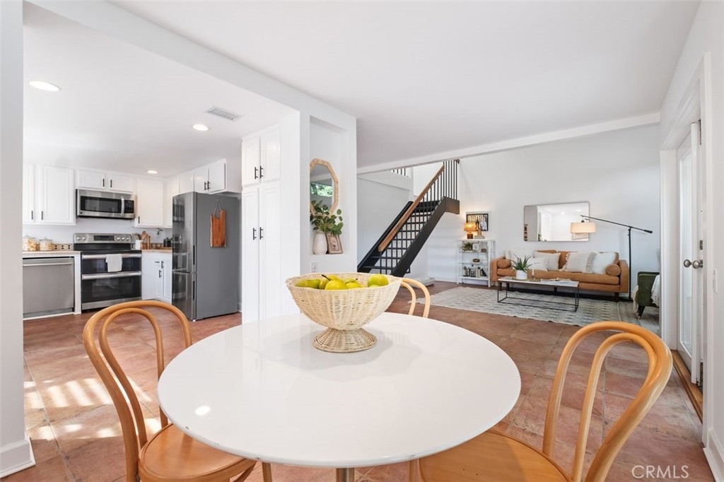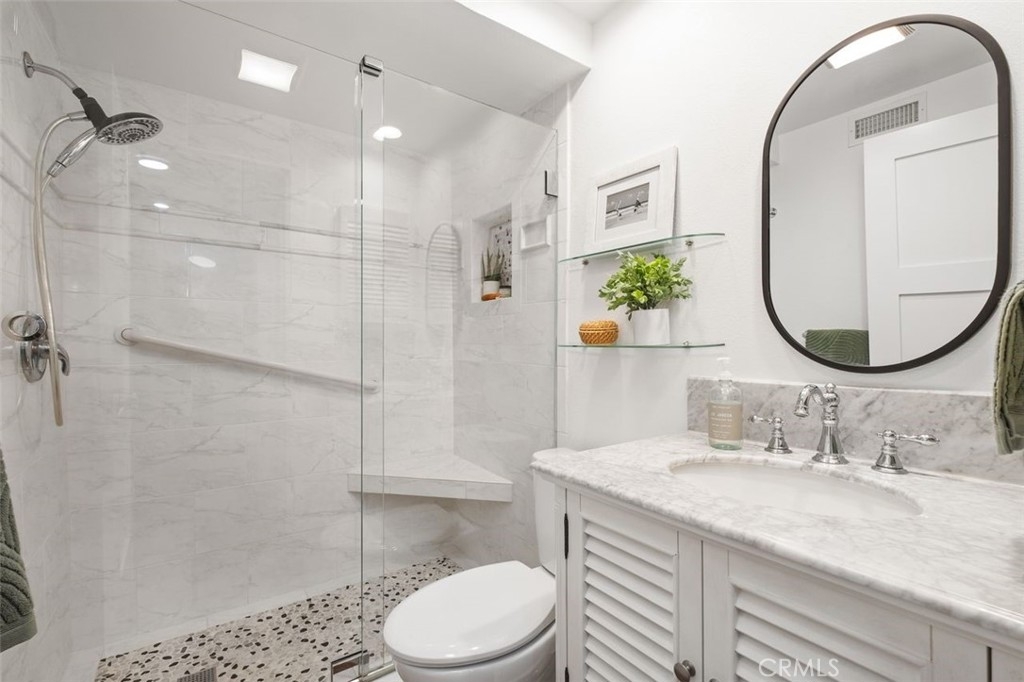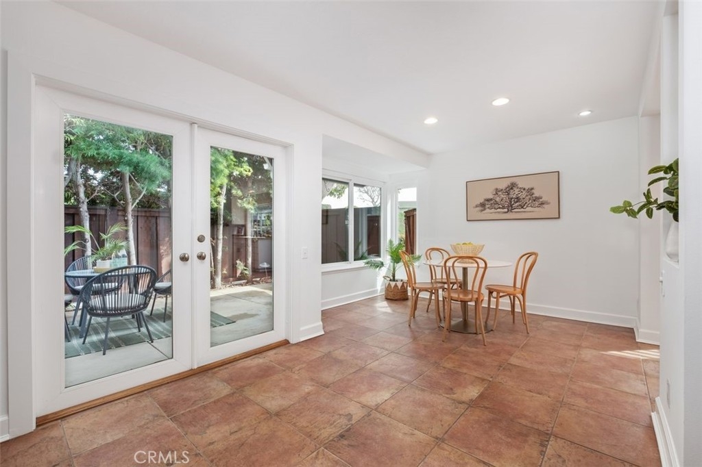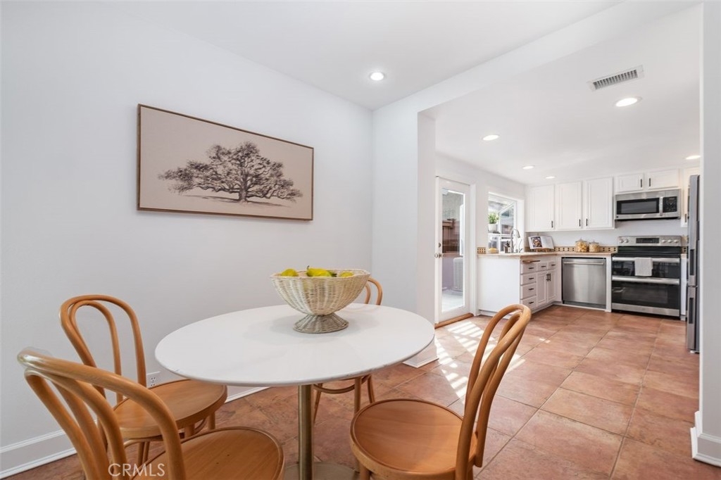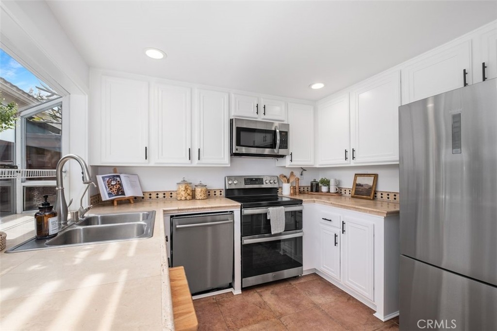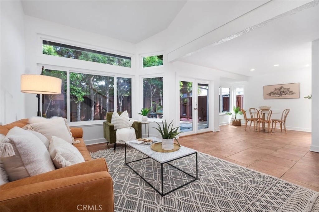 Beach-Close Bliss! Nestled in a prime end-of-cul-de-sac location, this 3-bed, 2.25-bath end unit gem offers the perfect blend of privacy and coastal charm! From the moment you step through the oversized double front doors onto timeless terracotta pavers, you’ll feel the warmth of natural light dancing off freshly painted white walls, creating an open and airy vibe. Main floor living? You got it! A spacious bedroom with a private entrance and remodeled bath makes hosting guests or multi-generational living a breeze. The expansive cathedral-ceiling living room flows effortlessly into the dining area, where beautifully cased windows frame the space over looking your backyard patio that runs the length of the home. This private oasis, surrounded by mature trees and soft evening lighting, is your ultimate retreat—complete with gated access for both seclusion and convenience. Back inside, the updated kitchen offers abundant storage, sleek stainless steel appliances, and direct access to a second outdoor patio space —ideal for everything from bbqing to dining al fresco to nurturing a raised garden in the beautiful California sunshine. Ascend your floating stairs onto brand-new luxury vinyl floors into a dreamy peek-a-boo ocean view primary suite with soaring ceilings, windows showcasing serene backyard views and a large walk-in closet. The en-suite bath features an upgraded shower/tub combo and a spacious vanity. A third bedroom, extra storage, and a ¼ bath complete the second level. Additional perks? A/C for those rare extra-warm days, recessed lighting, ceiling fans, a water softener, a water filtration system, an oversized 2-car garage with washer and dryer & tons of storage and workspace. The resort-style community pool and spa and park like grounds with lush greenery and winding paths to private play area are just the cherry on top! Close to world-famous beaches, award-winning schools, top-tier dining, and incredible shopping, this is the ultimate in casual coastal lifestyle. Love where you live - this is the one!