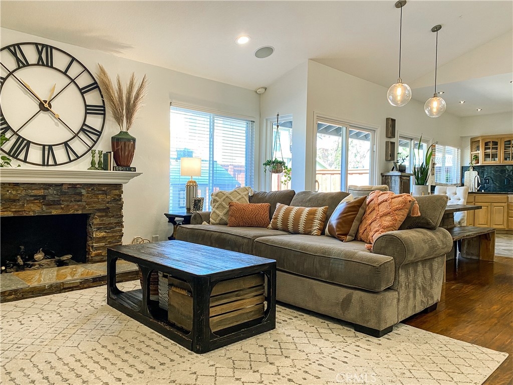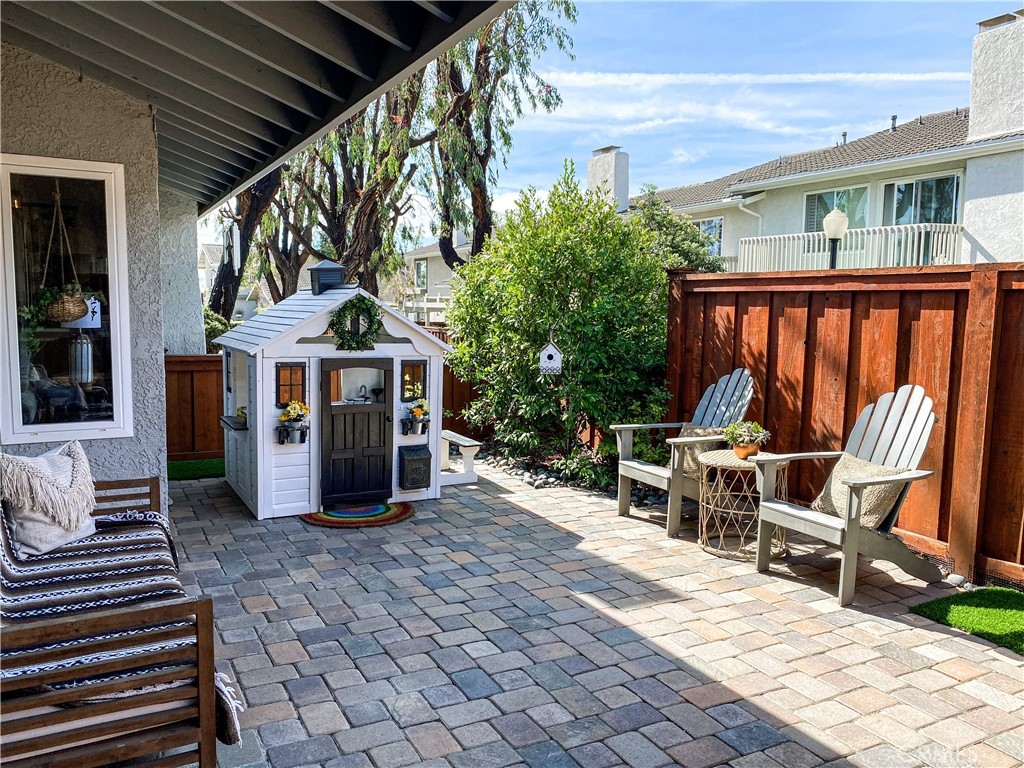 Rare opportunity to own a single-story home, west of the 5 freeway and just minutes to both the San Clemente Pier and Dana Point Harbor. This 3 bedroom, 2 bath attached SFR has a prime location in the Mira Costa Villas. The pool is just steps from the front door, the park a mere stroll, and Sprouts, HomeGoods, and restaurants are a short walk. This single story has vaulted ceilings and the living, kitchen, and dining room have an open concept that feels expansive. The living area is centered around a stacked stone fireplace with driftwood logs and sand under a gorgeous mantle. The master bedroom has an en-suite bathroom with tons of storage, walk-in closet with built-ins, a private patio (1 of 2 outdoor living areas!), and a unique 128 sq foot added loft space that is perfect for storage. The 2nd and 3rd bedrooms have walk-in closets and share a bath that has been recently updated. The main patio features pavers, turf, irrigated landscaping, and is accessed by 2 large sliders, facilitating indoor/outdoor living. Recent upgrades include fresh exterior paint, new doors and windows throughout, fresh white, bright interior paint, alkaline water filter in kitchen, HVAC, warm LED recessed lighting throughout, and natural fiber carpet in the master bedroom. Cox Cable and Water included in HOA.