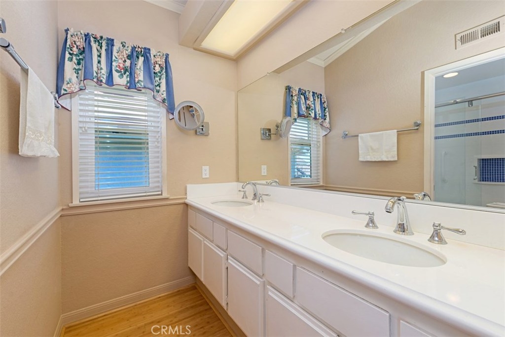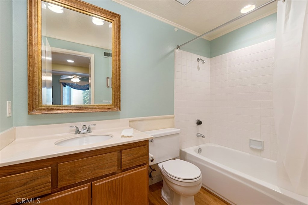 Welcome to this charming detached family home in the New Providence community with 3 bedrooms upstairs, an optional 4th bedroom downstairs and 3 full baths including one on the first floor. The open floor plan is filled with natural light from a large skylight, fireplace, bamboo wood floors, crown molding, wood shutters, a remodeled kitchen with granite counter top and a 2-car garage with storage. The master bedroom is beautifully designed with an en-suite bathroom equipped with dual vanities and a walk-in shower. Your guests will enjoy happy hour in your private back yard complete with a large deck and lush landscaping. This home is centrally located in the heart of San Clemente with easy access to The Outlets, award winning schools, world-class beaches and minutes from downtown shops, restaurants and entertainment. There is no mello-roos and the HOA dues cover most of the exterior maintenance. This is a great opportunity to add your personal decorating touches to create your own home experience.