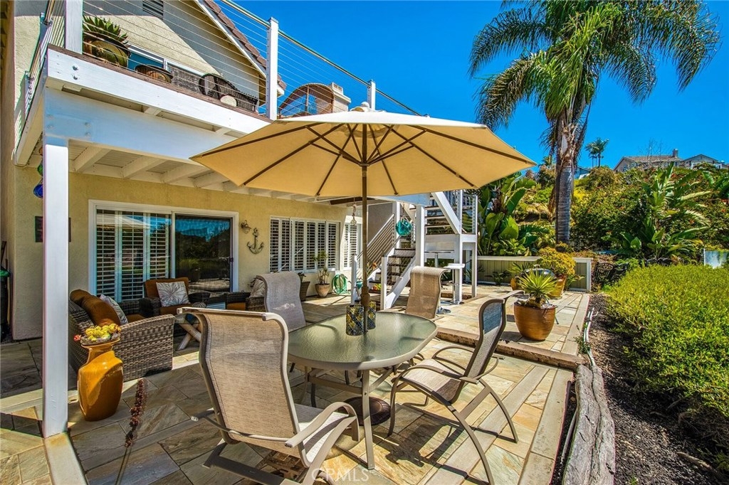 Wonderful Ocean View, Remodeled Home with a Cul-de-sac Location on a Single Loaded Street. Light and Bright Home with Open Feel Floor Plan. Classy Remodeled Gas Fireplace in Living Room with Stacked Stone & Reclaimed Wood Mantel and Tongue and Groove Vaulted Ceilings above. New Cabinet Doors, Pull Out Shelving, Quartz Counters and Stainless Steel Bosch Appliances in Ocean View Kitchen. Roomy Dining Room Area outside of Kitchen. Brilliant Storage under Stairway resembles a Walk-In Pantry. Wide Stairway with Stainless Steel Railing and Skylight take you to Upper Level. Wood-Look Tile Flooring on the Main Level and New Carpet on the Upper Level. Shutters on most Window Coverings. All Bathrooms have been updated with Quartz Counters, Wood-Look Tile Flooring, Replaced Sinks, Toilets and Lighting. Master Bathroom has a Tiled and Glass Walled Shower and Contemporary Style Sliding Door separating Shower and Vanity Areas. Walk-In Closet in Master Bedroom. Relax and unwind on the Custom Built Ocean View Deck with Stainless Steel Railing & S.S. Cabling and on the Covered Natural Stone Patio. Spectacular San Clemente and Catalina Islands and Sunsets Views. Attached Double Car Garage with Driveway Parking and Direct Access into Home. Convenient Laundry Area in Garage. Central Air Conditioning will keep you cool on those warmer days. Good Freeway Access. Just minutes away from several Beaches, Ocean, Pier and Harbor.