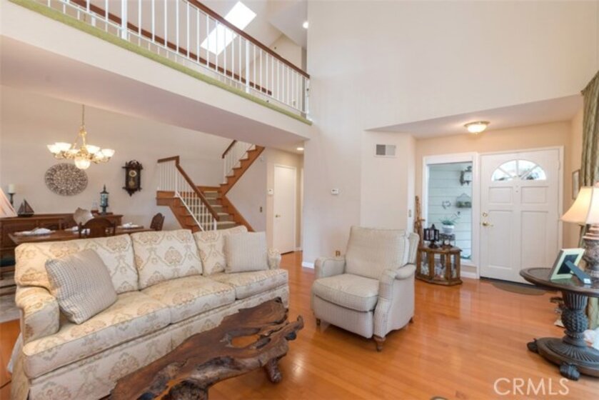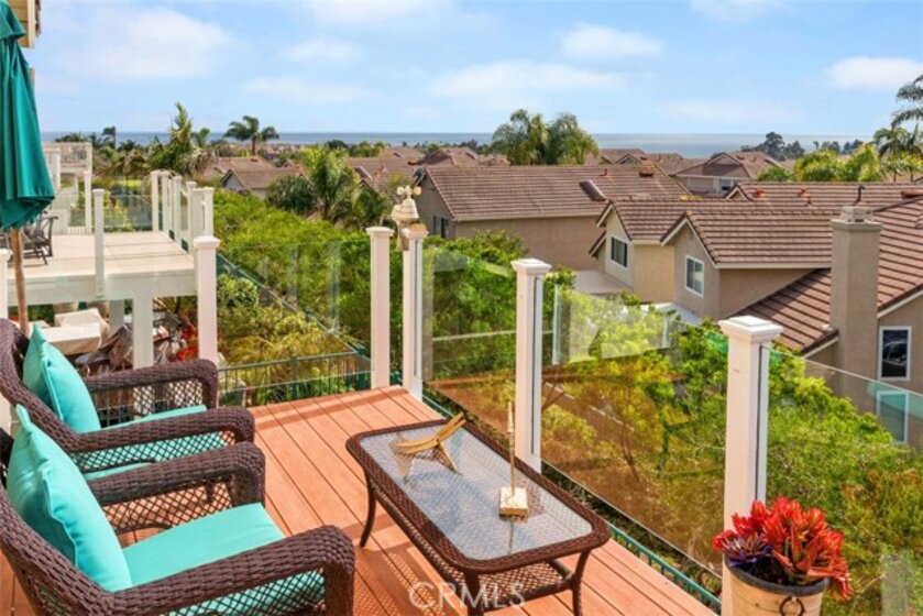 Gorgeous Ocean View Home perched on the rolling hills of San Clemente. Soaring ceilings and hardwood floors greet you as you enter. The open living and dining room are accented by a wood burning fireplace. The beautifully remodeled kitchen features newer rich wood cabinetry, stainless steel appliances, custom lighting, granite counters with Travertine backsplash, and breakfast bar. The family room is open to the kitchen and includes surround sound and plantation shutters. One of the secondary bedrooms includes a custom made Murphy Bed and desk. The master suite includes a walk-in closet, stunning bathroom with walk-in shower, dual vanities and custom tile work and a fabulous Ocean View deck where you can enjoy spectacular sunsets and cool ocean breezes. Other features include A/C, Tankless Hot Water System, CuraFlo Powercoated Pipes, and Finished Attic. Welcome Home.