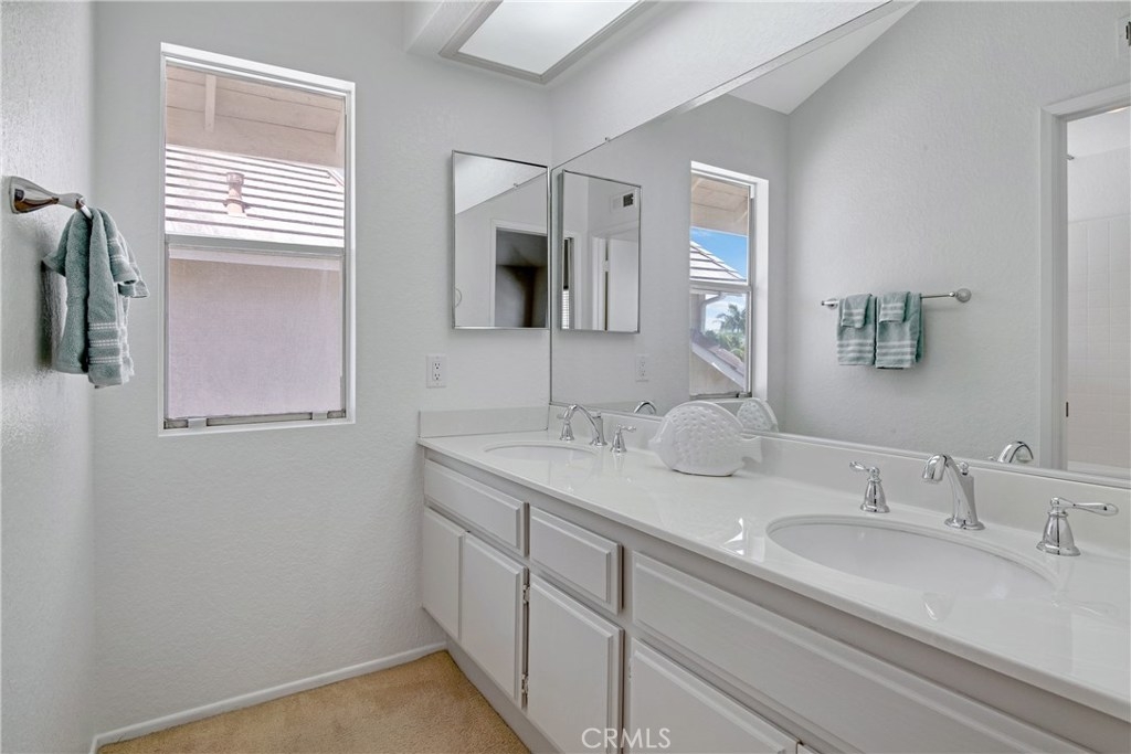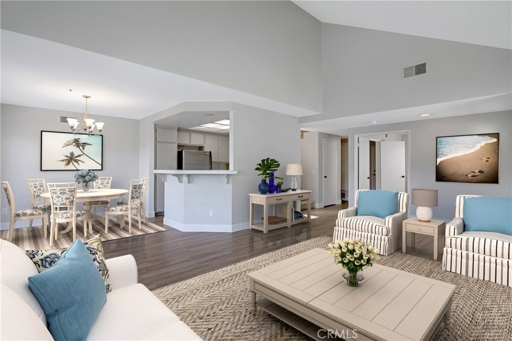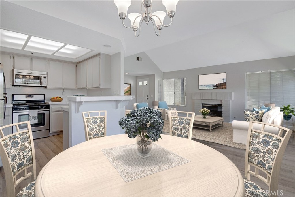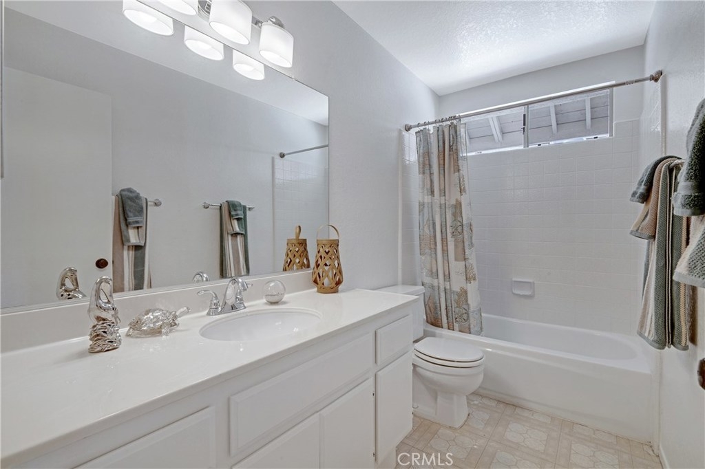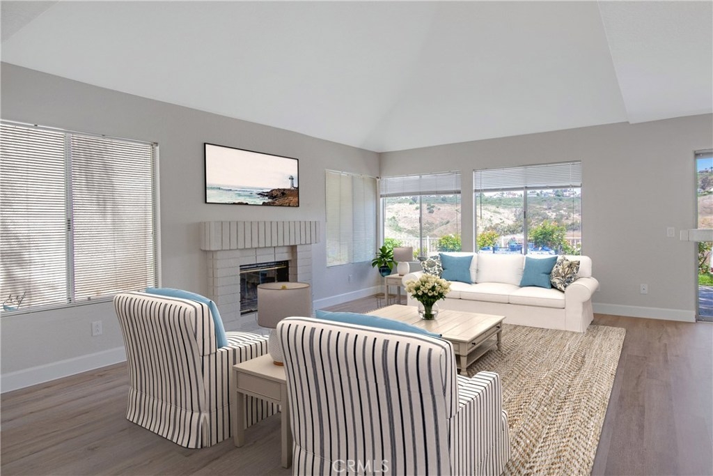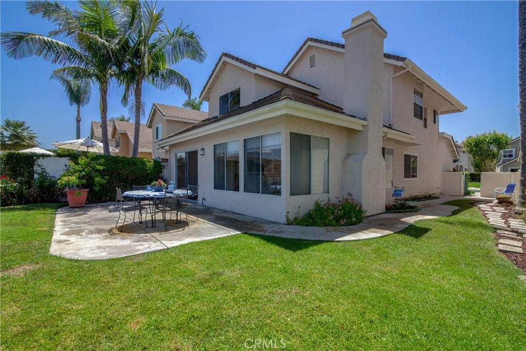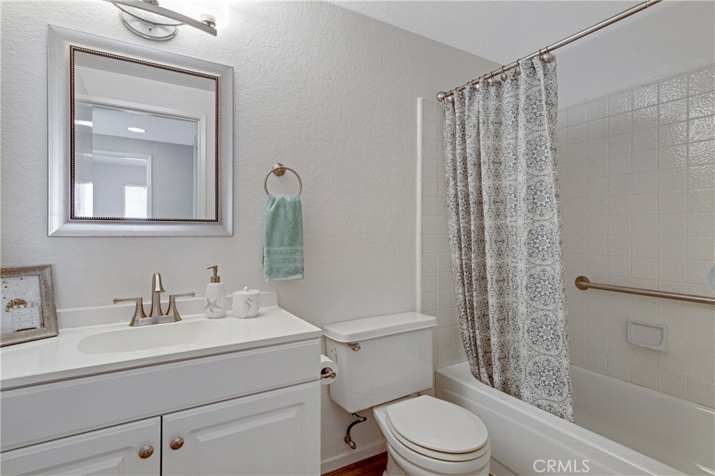 Location, Location! This recently refreshed home is ideally located near the end of a cul de sac with panoramic views of the canyon and hills offering the privacy and location you have waited for. The sought-after floor plan includes a main floor bedroom or den option, a full bath, and a large living area with a cozy fireplace and views to the backyard and the surrounding hillside. Upstairs you will find a generous master bedroom with a walk-in closet, double vanity, and a privacy door leading to the bathing area with a soaking tub. The back bedroom allows for the beautiful views of the hills and canyon. Recent upgrades include fresh neutral-toned interior paint throughout. Downstairs you will find new easy-care wide planked vinyl flooring in the living room, dining area, kitchen, and full bath. New enlarged baseboards have been added to frame the beautiful coastal style floors. The kitchen cabinets have been recently painted with new hardware installed. A new crisp white vanity, mirror, and lighting were added to the downstairs bath. Upstairs, the vanities in the two additional baths were freshly painted, new lighting was added in the hall bathroom. From the front gate you will enter the wrap-around yard area which offers fresh cool ocean breezes and plenty of space for outdoor entertaining and play as you take in the sweeping views. HOA maintains exterior paint, roof, front yard, front & back fencing & more! Near beaches, shopping, restaurants & Aquatics Center