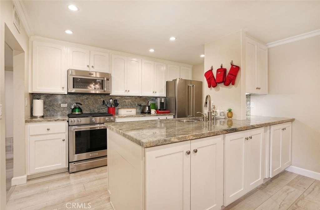 OCEAN AND GOLF COURSE VIEWS! FHA/VA approved NO Mello Roos DESIGNER PERFECT TURNKEY condo 2 bedroom, 2 bath, single story open floor plan recently remodeled with high quality and current design materials. Minutes to world renowned Trestles Beach and downtown San Clemente. Pool, jacuzzi, spa, rec room, tennis courts, underground gated parking with extra storage area. Custom fireplace in living room, oversize master suite, dual sinks in master bath, outside area opens to large green belt great for entertaining. New vinyl double pane windows. White shaker (maple) cabinets. Quartize kitchen counter tops (real stone not man made), Stainless Steel Appliances: Kitchen Aid - Dishwasher, and Range (gas), Maytag - Microwave, Wine frig. HOA includes all amenities, water, trash and basic cable. Low utilities.