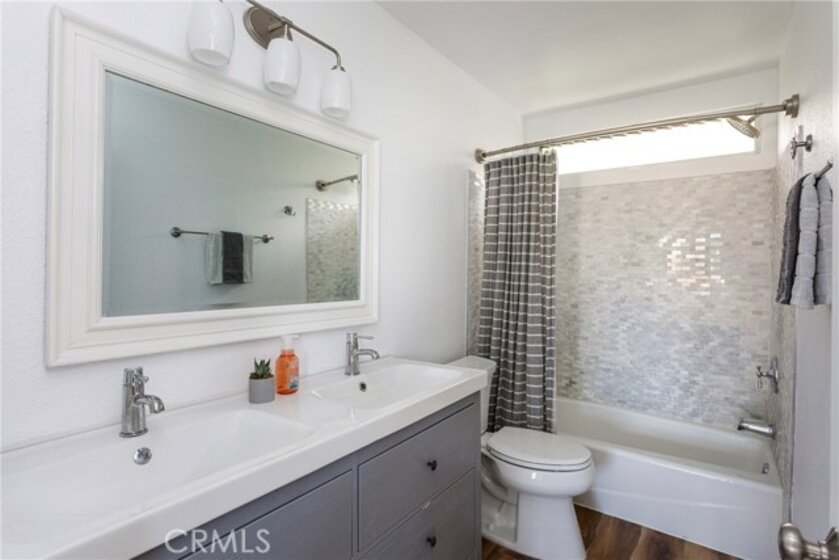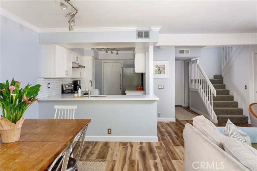 This stunningly upgraded home is nestled in the quiet and highly sought-after Presidential Heights 1 community. Walk through the charming front courtyard and enter this spacious and open floor plan. The sliding glass door and over sized window flood the great room with natural light. The kitchen’s white cabinets and quartz counter tops pair perfectly with the quality stainless steel appliances. Both sizable bedrooms are upstairs and feature vaulted ceilings. The master has a walk-in closet while the secondary bedroom benefits from a balcony with a panoramic view. Cozy up with a cup of morning coffee or enjoy the stunning San Clemente sunsets. The newly remodeled bathrooms are tasteful. The full bathroom upstairs has a double sink and gorgeous tile walls surrounding the shower and bathtub. Exit the great room downstairs and enjoy a private backyard where you can take advantage of the fantastic coastal climate. Presidential Heights has 9 pools and is located less than 10 minutes from San Clemente Municipal Golf Course, San Clemente State Beach, San Clemente Pier, San Mateo Campground, the Outlets at San Clemente and so much more!