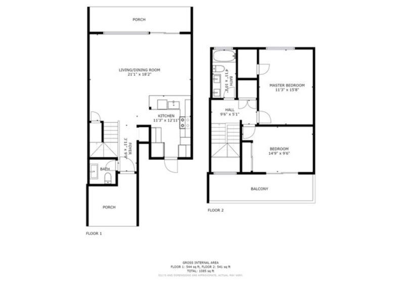 2 beds, 1.5 baths, 1,192 sq.ft.