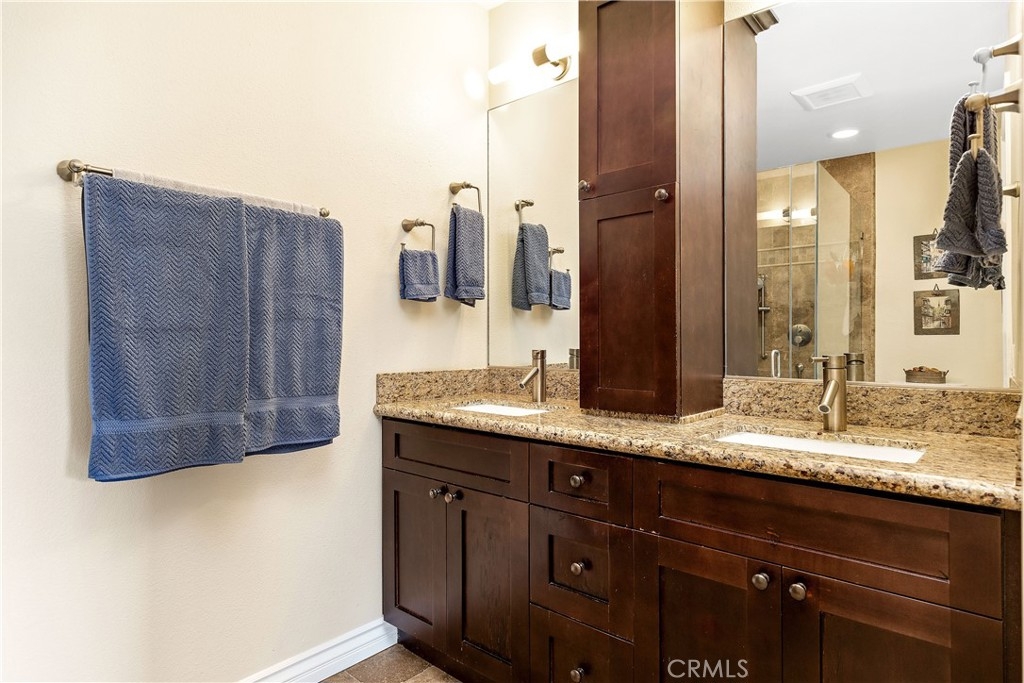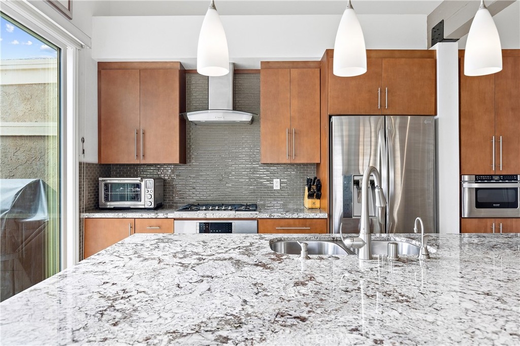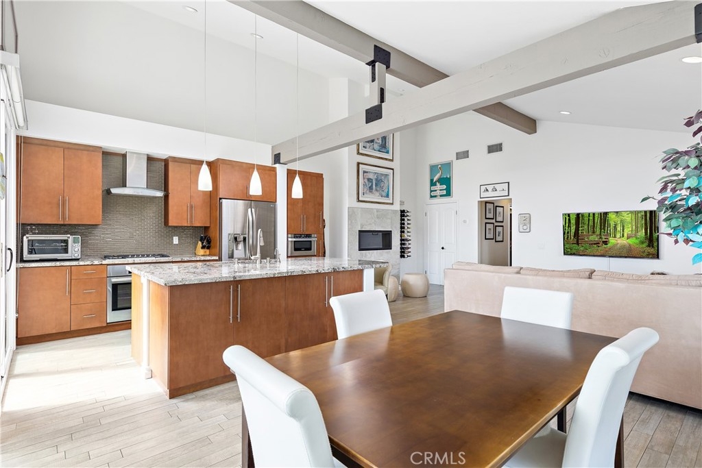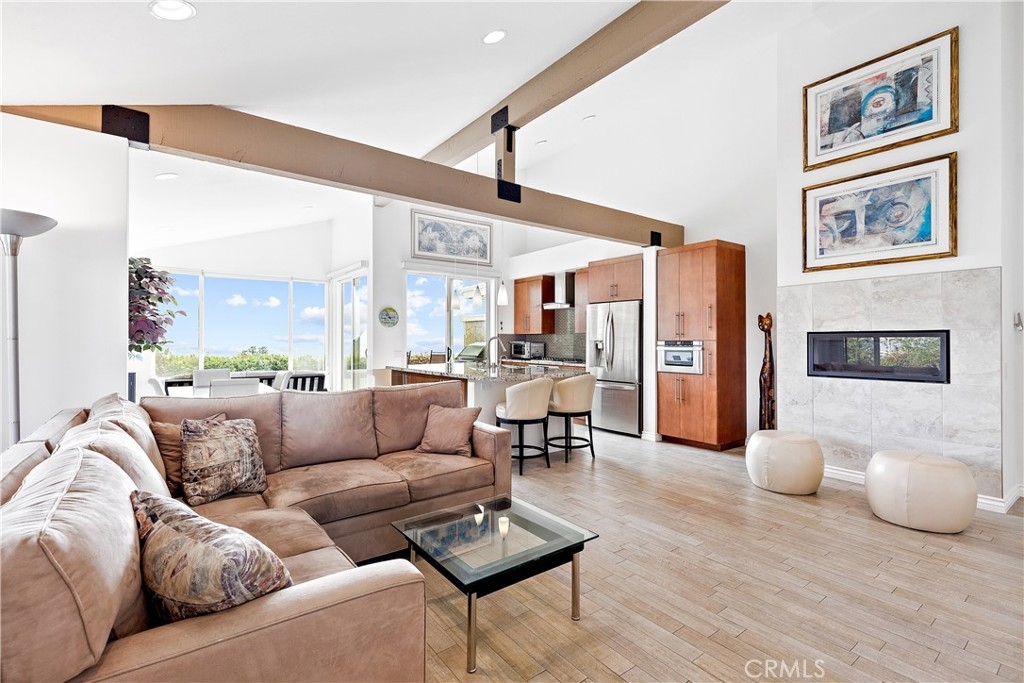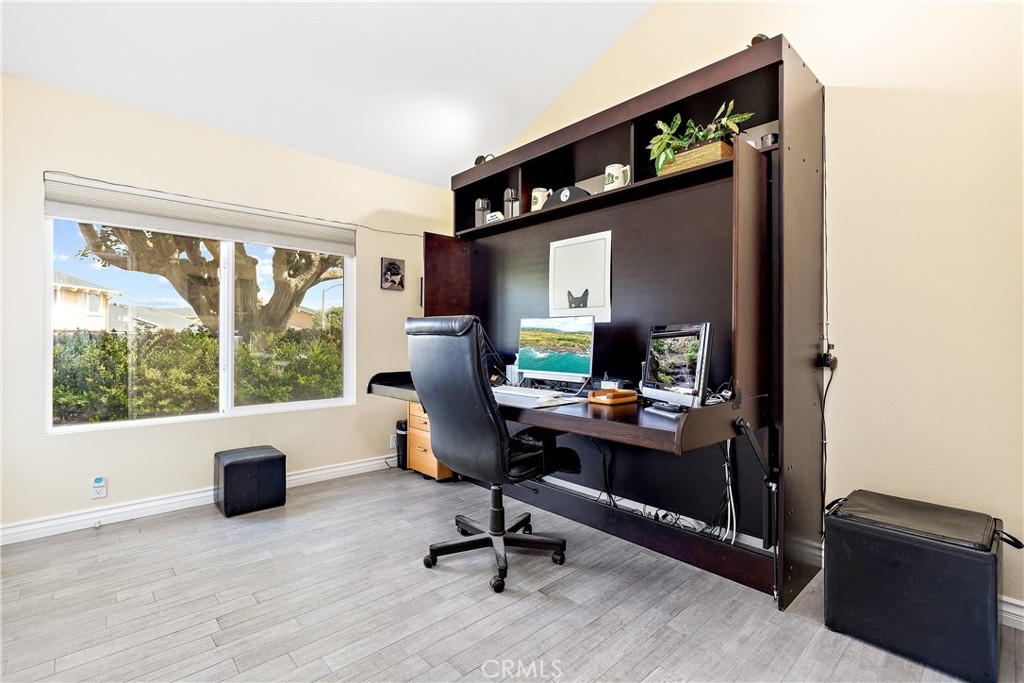 Don’t miss this beautifully remodeled and expanded single level home nestled in the hills of San Clemente in desirable Presidential Heights 1. The sellers completely remodeled this home in 2014 from floor to ceiling and added over 200 additional sq.ft. Features and improvements include panoramic ocean views; open floor plan with vaulted ceilings; remodeled kitchen with custom cabinetry, full slab granite island and stainless appliances; remodeled both bathrooms including custom cabinetry and space saving pocket doors; high-end porcelain wood flooring throughout, double-paned windows; new HVAC; replumbed entire home in 2020 with new copper and Pecs plumbing; whole home water filtration & softening system; added thermostatically controlled gas fireplace; finished attic with cedar flooring and pull-down ladder for additional storage; solar attic fans in garage & attic; epoxy garage flooring and custom garage cabinets on both sides and back. Included with purchase is a custom wall bed that converts from office desk to guest bed without moving or disconnecting anything! This end unit condo offers privacy with only one neighbor. Community HOA maintains roof and exterior and offers 9 community pools.