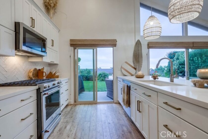 Welcome to this inviting Ocean view beach home located in the highly desired Presidential Heights neighborhood of San Clemente. This rare end unit has tons of privacy and stunning ocean views. As you walk up to the upscale Dutch door, you enter the living room with vaulted ceilings, large windows and large slider doors that fill the room with sunshine and ocean breeze. Windows and sliders also feature custom blinds with blackout features. The luxurious kitchen features new white quartz countertops, an exquisite tile backsplash, new gas range, new refrigerator, and designer appliances. The master suite is spacious, with tons of windows and natural light, and a beautiful ensuite master bathroom. The main floor has a large bedroom and full bathroom. This beautiful home features new white oak wood flooring throughout. Located within walking distance to Concordia Elementary and the beautiful Riviera Beach. This remodeled turn-key home will not last long!
