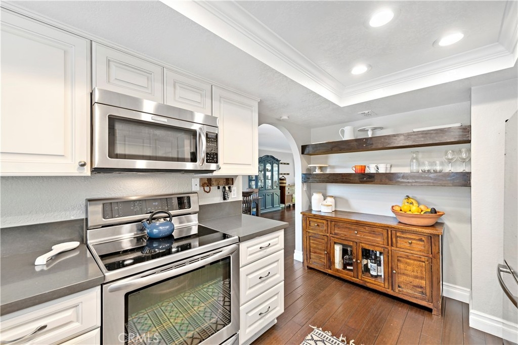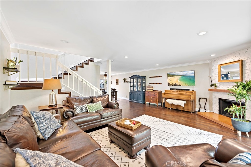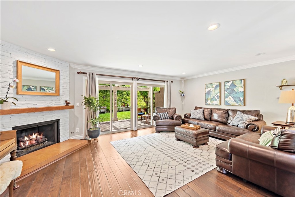 Beautifully upgraded 3 Bedroom, 2.5 Bathroom, single family attached residence with a 2 car garage. Features include fully remodeled kitchen and bathrooms, newer dual pane windows and sliders, gorgeous wood flooring throughout living, dining, stairway and hallway, added recessed lighting, upgraded baseboards and casings, crown molding, customized stone fireplace with mantle, built-ins in closet, customized master bathroom with a large walk-in shower, vaulted ceilings upstairs and two outdoor living areas; a roomy front courtyard off of the kitchen and a private backyard. Welcome home to Presidential Heights II with its sweeping ocean views, many pools and spas and large greenbelts. Presidential Heights II consists of 26 buildings with 6 units each building, has 4 pools and 4 spas. 313 Calle Cuervo is adjacent to ocean view grassy area perfect for small gatherings or just to sit and watch the stunning sunsets.