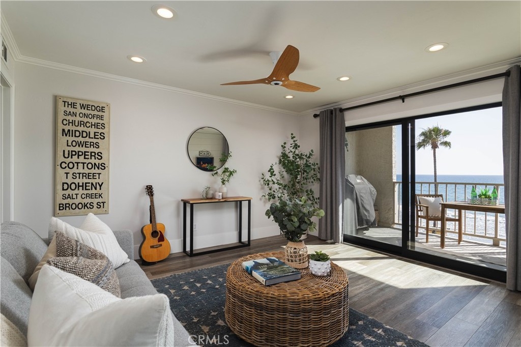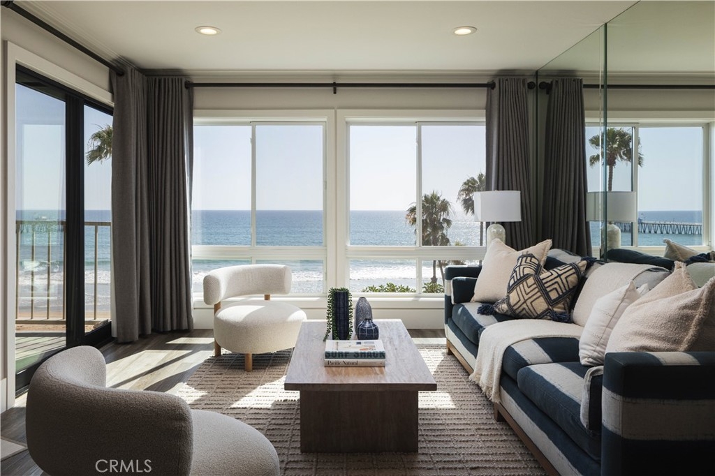 Welcome to your dream coastal retreat in beautiful San Clemente. This stunning beachfront condo offers the perfect blend of relaxed luxury and everyday comfort, with breathtaking sit-down ocean views, whitewater, and sweeping vistas of the sand—all from the comfort of your own home. Not to mention direct private access to the beach just steps away from your front door! Expertly constructed on dozens of deep caissons, the building offers an added level of structural integrity and peace of mind rarely found in oceanfront properties. Wake up to the sound of waves and enjoy your morning coffee on a private balcony overlooking the Pacific. Inside, the home features an open-concept layout filled with natural light, a spacious living area, and a modern kitchen complete with high-end finishes, sleek countertops, and ample storage—perfect for entertaining or unwinding after a day at the beach. Thoughtfully updated throughout to create a warm, inviting atmosphere that captures the essence of Southern California coastal living, this unit is sure to impress the most discerning clientele. Ideally located, you’re just a short walk to San Clemente’s vibrant downtown, where you’ll find boutique shopping, dining, and local charm. Set within the highly sought-after Reef Gate community, this 'building A, front row' unit is perhaps the best unit in the entire complex—offering a rare combination of privacy, views, and premium positioning, and quick and easy beach access. Additional highlights include private parking and abundant storage, along with resort-style amenities such as a pool and jacuzzi, sauna, workout room, and game room—everything you need to enjoy the ultimate beachside lifestyle. Whether you’re looking for a full-time residence, a vacation getaway, or a prime investment opportunity, this is your chance to own a true slice of paradise on the sand. Embrace a beach life, where sun, sounds of the surf, sunsets, and walks on the beach are closely interwoven.