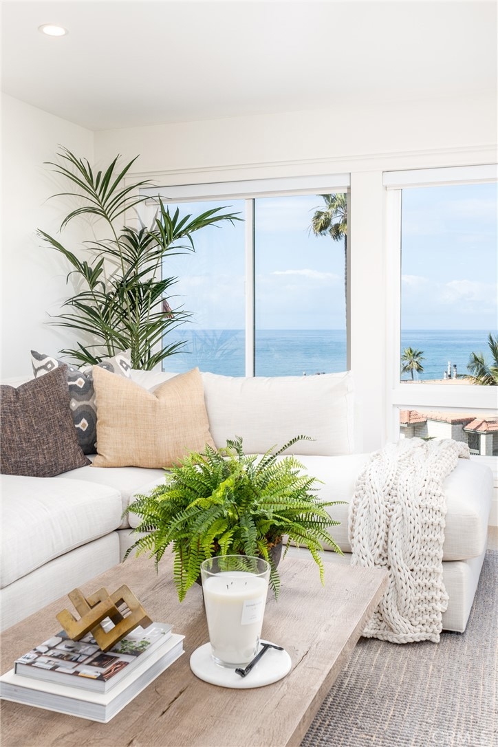 This beautifully remodeled luxury home offers breathtaking white-water views extending to the Dana Point Headlands. The open floor plan, complete with designer finishes, seamlessly blends style and comfort. The spacious primary suite boasts dramatic ocean views, while two additional bedrooms and three coastal-inspired bathrooms provide comfortable space for guests. A gas fireplace with shiplap adds warmth and ambiance on cooler evenings. Enjoy resort-style living with stunning Pacific sunsets and exclusive private beach access to San Clemente Beach. A short walk takes you to the iconic pier, Fisherman's Restaurant, and the charming downtown area, known for its boutique shops and dining. Located in the gated Reefgate West community, residents enjoy top-tier amenities, including a pool, spa, sauna, rooftop sundeck, gym, recreation room, meeting spaces, and a banquet hall. Elevators provide easy access to the third floor, and two gated parking spaces add convenience. Short-term rentals (30+ days) are welcome.