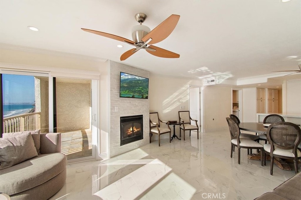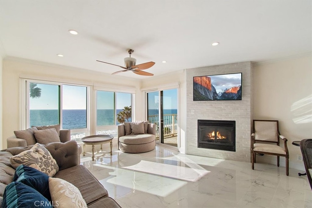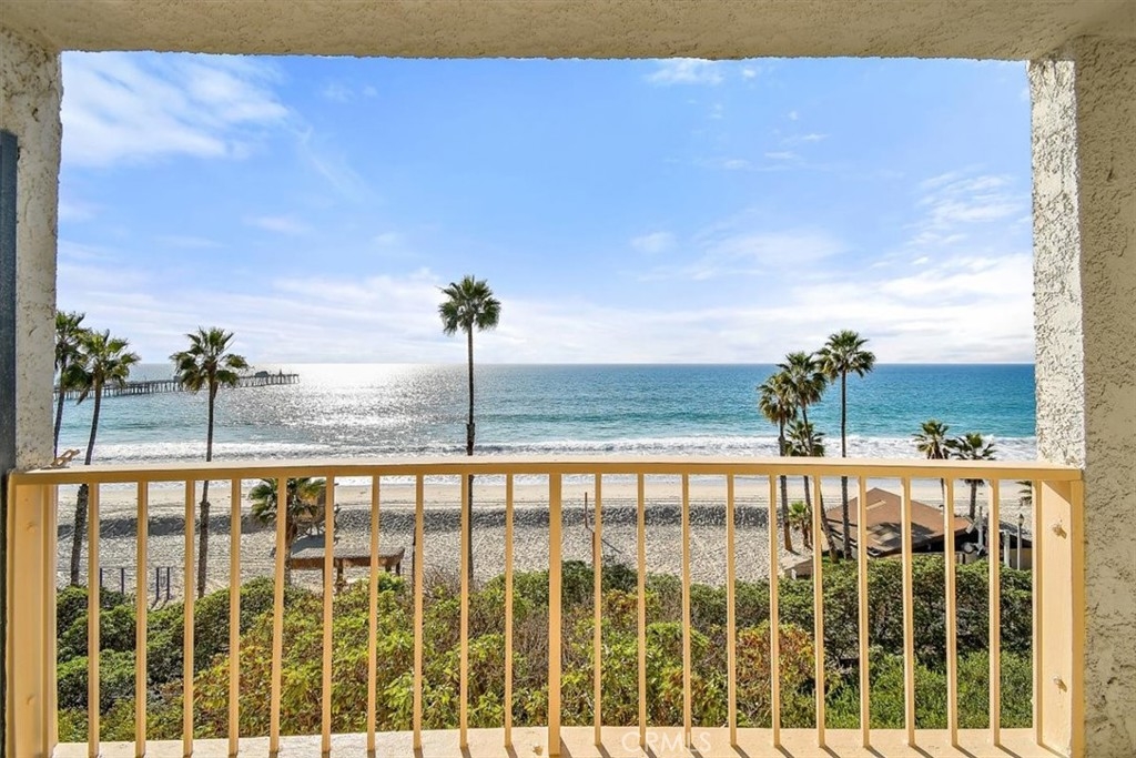 Incredible Opportunity to acquire a legacy property with the sound of the ocean echoing throughout the home! Located in the coveted Reef Gated condos in the exclusive building (A). San Clemente, pearl of the sea. Views as far as the eye can see with unmatched Sunset golden hour that defines Southern California living. This ocean front home has been renovated with timeless upgrades including "Carrera marble" waterfall countertops, "Wolf" appliance in the kitchen, beautiful "Zelige Moroccan tiles" adorn the living room fireplace & stunning "marble flooring " throughout. The Balcony overlooks the ocean, a place to inspire the best of thoughts. Ownership within the community allows Access to the sundeck that overlooks the water, gym, pool with spa & access to your private individual locked storage room to store all your beach accessories. The unit comes with tandem parking stalls within the building's 24hour secure/ gated garage. The unit has its own in-unit laundry. Schedule a private tour & experience the breathtaking views in the comfort of your home.