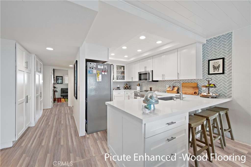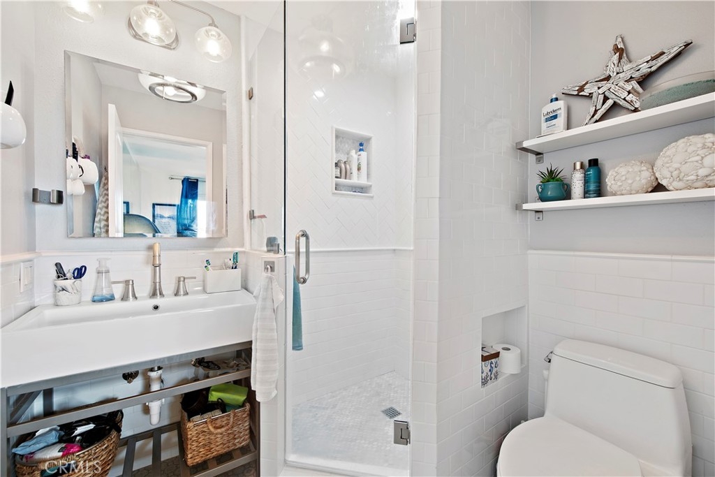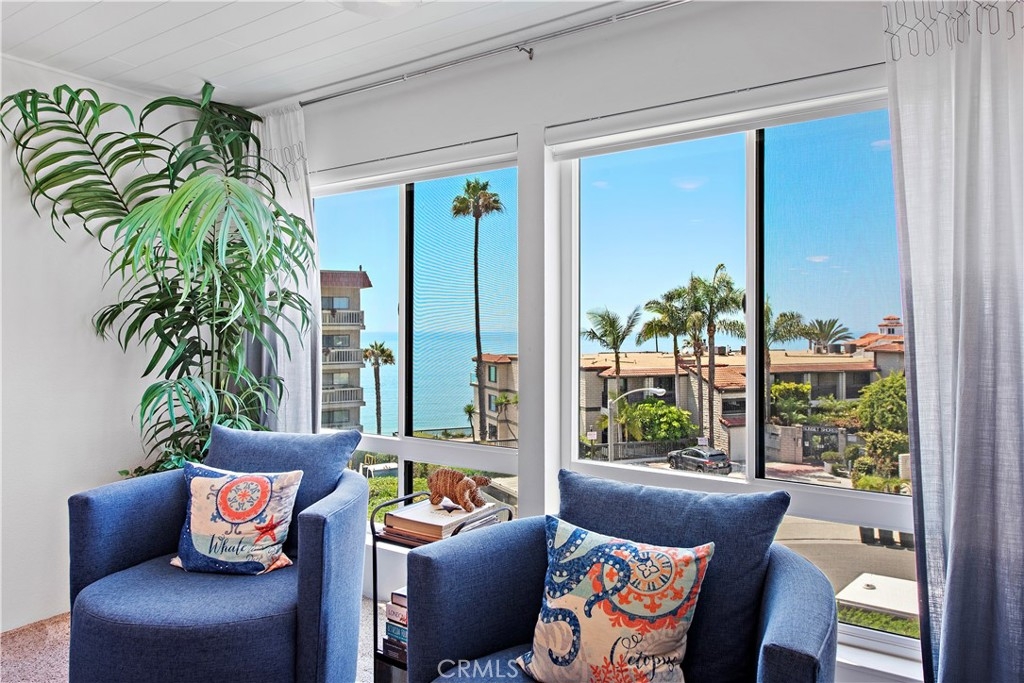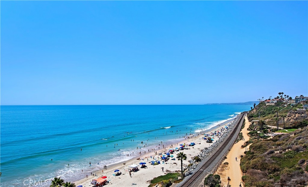 Truly one of the most outstanding opportunities in the premier ocean front community of Reef Gate West, in San Clemente. Enjoy beach style living in a resort-style surrounding! Upon entering the main living area, you’ll be captivated by beautiful Ocean & Catalina Island views. Recently remodeled, the open floor plan incorporates 3 bedrooms (2 ensuite) and 3 full bathrooms. The Primary Bedroom offers a walk-in closet, private bathroom and shares the patio, directly off the family room which captures the ocean views and the sounds of crashing waves right from bed. Tongue and groove ceiling and shiplap accents give a clean feel, and the home has been outfitted with dual pane windows and sliders throughout. A fully renovated kitchen is complimented by quartz countertops, quartz sink, custom built shaker cabinets, KitchenAid Stainless steel appliances consisting of a Convection Microwave | Dishwasher |Refrigerator and a Bertazzoni Induction range and convection oven for an optimal cooking experience. The community neighbors the historical ‘Casa Romantica’ and is a superior location for walking the beach trail, surfing and sunning, walking to the farmer's market in town, restaurants, and shops. Amenities of Reef Gate include a heated pool and spa, recreation room, exercise room, sauna, gated entry, and private access to the beach along with additional storage for your beach toys, surfboards, bikes, etc . The elevator makes for single level living and easy beach access. The seamless coastal flow through this condo at sea is nothing less than your dream getaway home, an idyllic location for Southern California living!