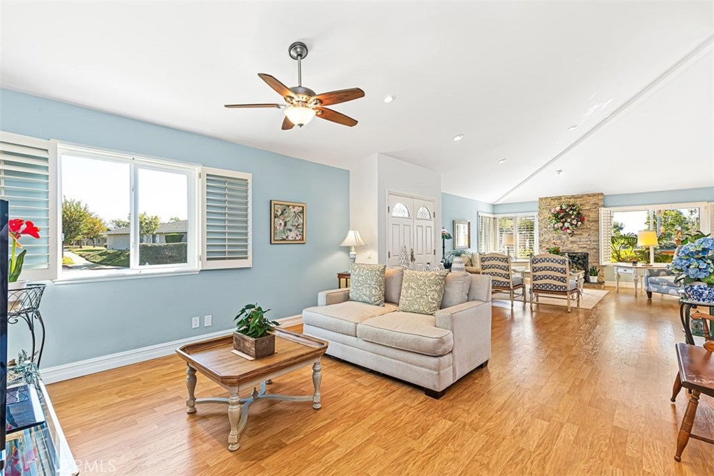 Nestled on a premium elevated location, this stunning SINGLE STORY Seascape Village home with an open plan & soaring ceilings offers the very best of gorgeous coastal living. Originally one of the builder models, this home has gone through extensive renovations including custom interior paint, quartz counters & custom backsplash in kitchen along with new stainless-steel appliances & crisp white cabinetry. Your buyers will love the home’s laminate wood flooring finished with crisp white crown baseboards. The remodeled fireplace is a gorgeous focal point with custom stack-stone surround. The den walls were removed to create an entirely open floor plan & the ceilings were raised to keep everything light & bright. Master en suite has been remodeled with separate dual vanities & walk-in shower. The guest bedroom offers fabulous treetops views & the guest bath features granite counters & updated fixtures. Ceiling fans in both bedrooms as well as the family room and dining area keep the ocean breezes flowing throughout the house. And let’s talk about the VIEWS! Enjoy time with family & friends on your oversized back patio with gorgeous treetops views & even peek OCEAN VIEWS. Located just ½ mile from the coastline, Seascape Village offers residents a Clubhouse, 2 pools, 2 spas & tennis court. Minutes to the best shopping, beaches, schools, freeway & charming downtown San Clemente … Your best life starts here! (prof'l photos coming 1/11)