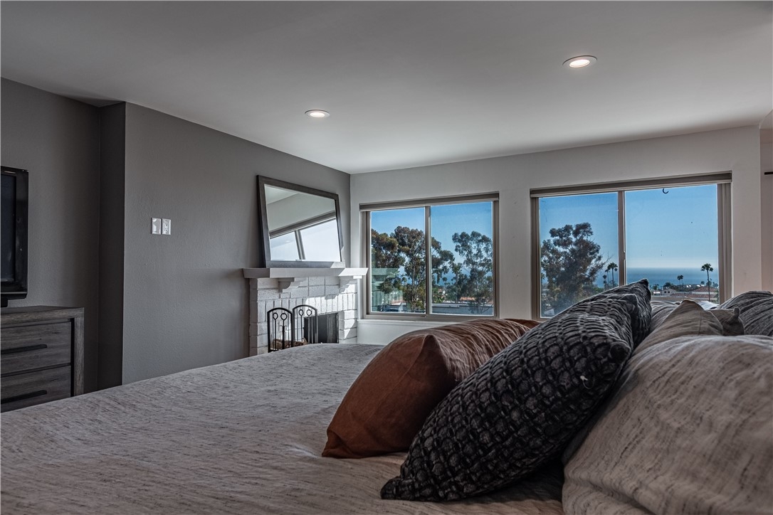 Enjoy your 180 Ocean views from nearly every room in this remodeled beach home located in the community of Seaview Townhomes smack in the heart of San Clemente. This home features 3 bedrooms, 2.5 bathrooms and office in the master suite. The floors include reclaimed barn wood floors and tile throughout, newer doors, triple pane windows, upgraded baseboards, custom artwork painting, brick walls, floating cabinets, built-ins, $25,000 surround sound and smart home lighting system. The remodeled kitchen features newer cabinetry, newer stainless steel appliances and hood, full subway tile backsplash, oversized sink and plenty of counter space. The great room flows seamlessly from the kitchen and features a dining room and spacious living room with cozy brick fireplace and slider to private California Room that showcases endless White Water Ocean views and sunsets. The Master Suite features a brick fireplace, hard wood floors PLUS an added on area that can be used as a retreat area or an office, in addition to this it includes THREE generously sized closets and a fully remodeled bathroom with dual vanities. Two additional secondary bedrooms are a generous size and both on their own levels. Convenient Indoor laundry, 2 car attached garage with direct access and central A/C. Walking distance to Del Mar and just a couple miles from the pier / beach. The community offers a pool, spa, and sport court, as well as a dog park