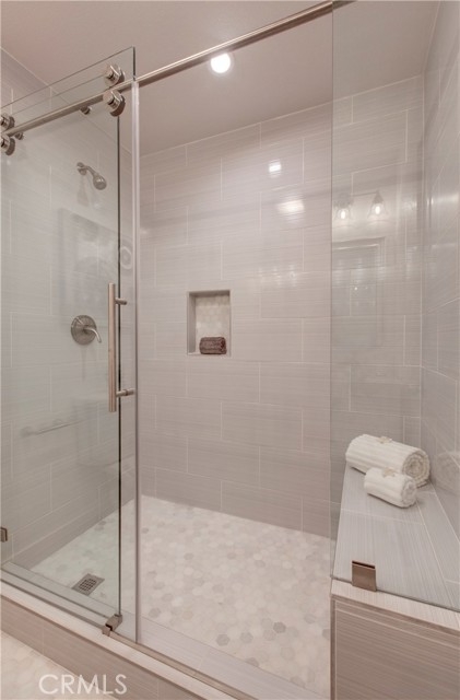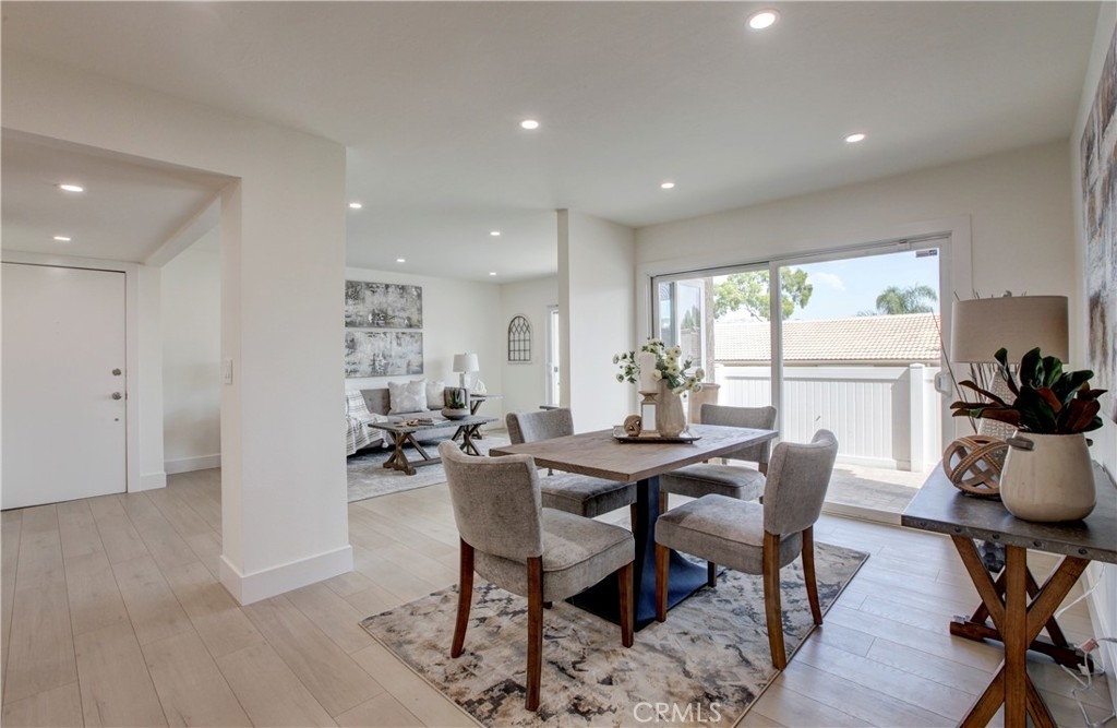 Highly upgraded and professionally designed modern condo located in the Shore Cliff Villas and within walking distance to the beach. This 3 bedroom, 2 bath home has just gone through a complete remodel. Upgraded flooring, upgraded baseboards, new dual pane windows, new dual pane slider and recessed lighting throughout the home. The kitchen features stainless steel appliances, upgraded stone countertops, custom backsplash and brand new custom cabinets. The dining area is open to the family room. Ample natural light flows throughout the home. The primary bedroom en suite offers dual sinks and glass enclosed walk in shower. The guest bathroom has dual sinks and modern finishes. Inside laundry room and two car garage. HOA amenities include 2 pools and spas. HOA fees cover water and trach. The Community was tented for termites in 11/21. Short distance to the freeways and beaches.