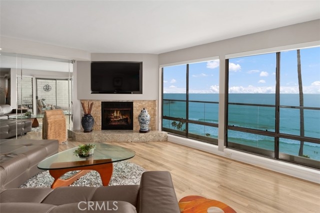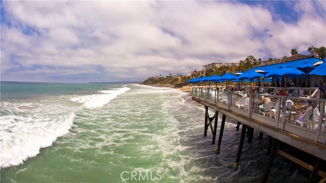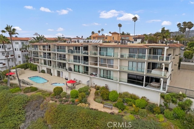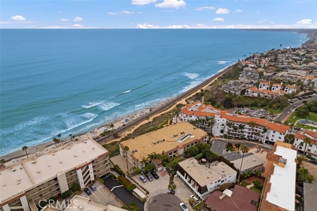 This rare, oceanfront condo has sweeping ocean, white water, San Clemente Pier and Catalina Island views with direct beach access. “Sunset Shores” is small community of 18 single-level condos with unobstructed views of the ocean, located in the historic downtown area. Enjoy sitting on your private balcony, watching the waves and surfers below while formations of pelicans glide by your windows. Beautiful, golden sunsets frame Catalina Island on the horizon. The interior features a gourmet kitchen with a walk-in pantry, stainless steel appliances, gas range, bar seating and granite countertops. The kitchen faces the ocean and opens to a dining area, wet bar and an expansive living room with a corner gas fireplace that is enjoyable on cool nights. The open floor plan and balcony overlooking the ocean is delightful and spacious for entertaining your family and friends. Large primary bedroom has a private bath, dual sinks, stylish light fixtures and an oversized step in shower. Secondary bedroom also features its own private bath with vanity area and shower. Convenient 3rd bathroom with shower is also featured. Interior laundry room fits side by side washer and gas dryer and has plenty of storage cabinets. Zoned heat and air conditioning with remote control! The living room is large enough to create a 3rd bedroom and has been done by several owners. Sunset Shores offers a sparkling pool, relaxing spa and recreation room. TWO PARKING SPOTS are available in a secure, subterranean parking lot with a private storage room. Convenient ELEVATOR will take you straight to your condo. NO STEPS necessary. Sunset Shores is ideally located near historic downtown, the farmers market, local art gallery and art shows, restaurants, the pier and beach trail.