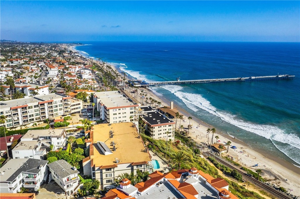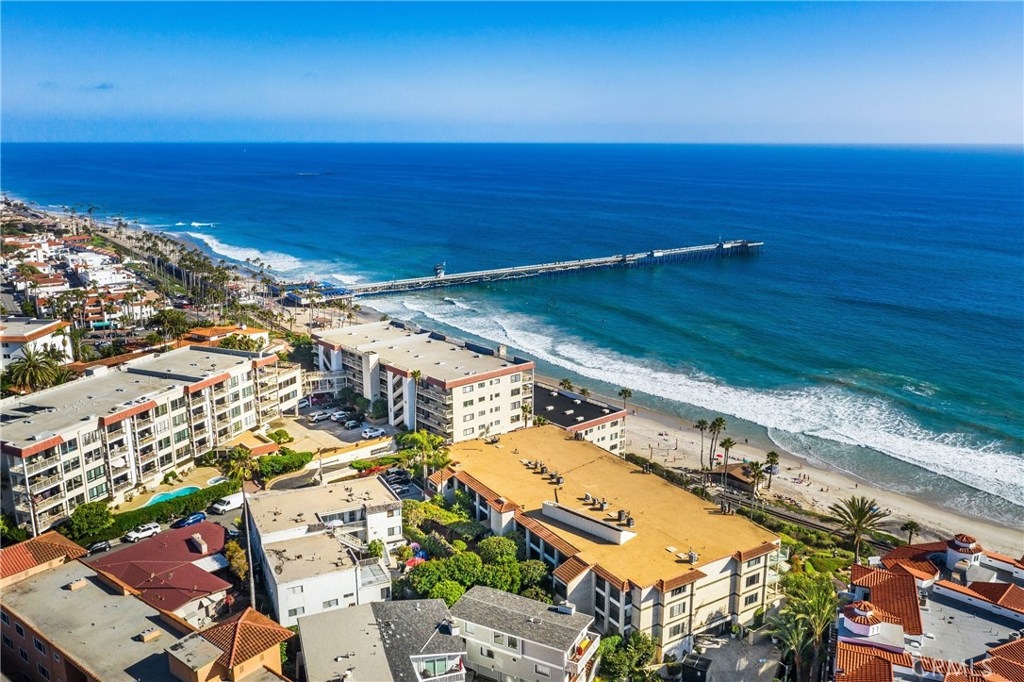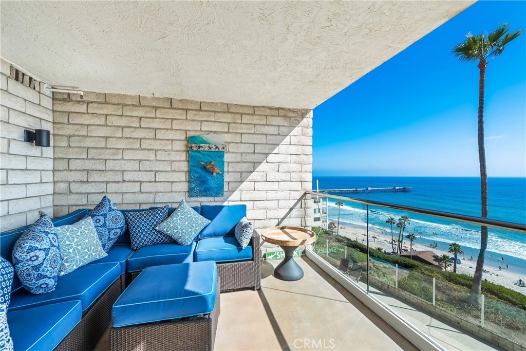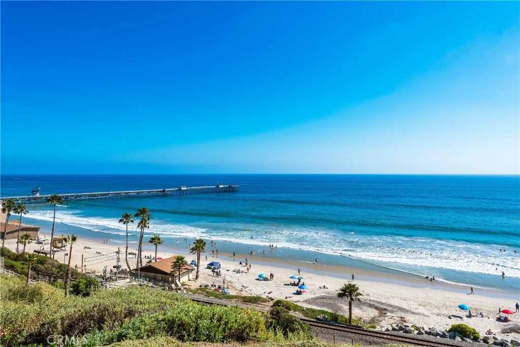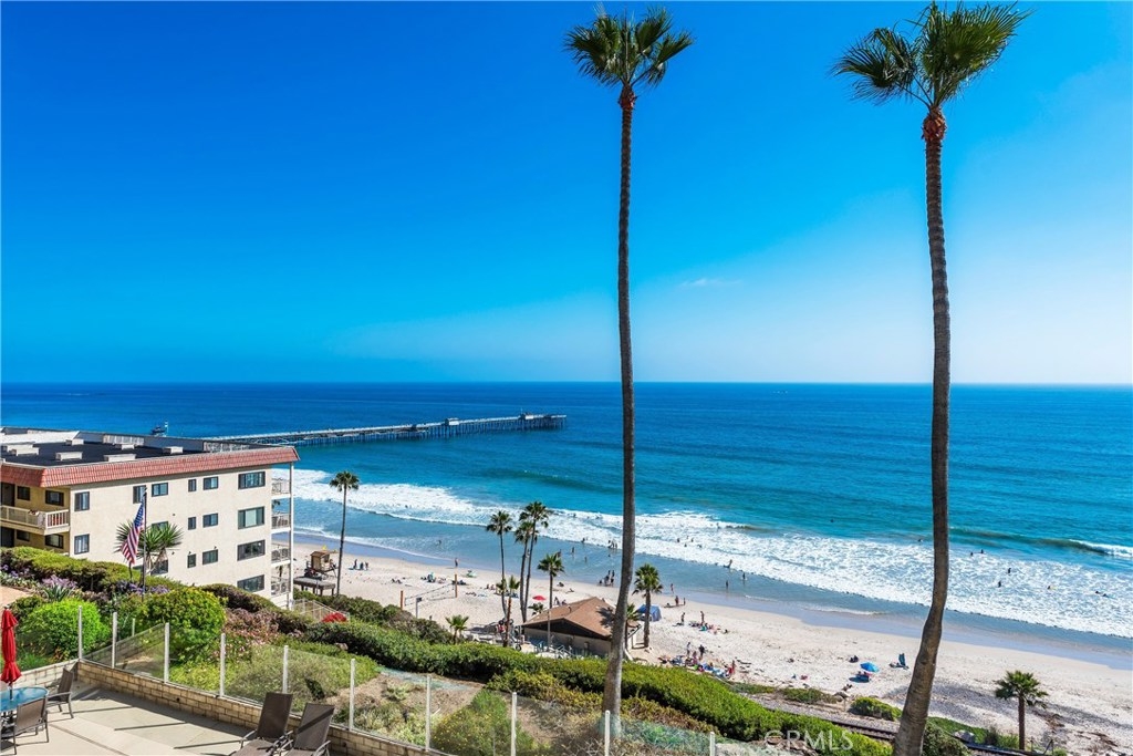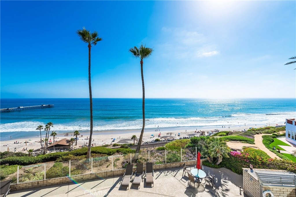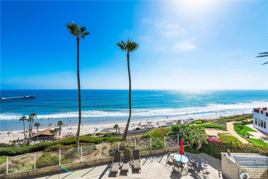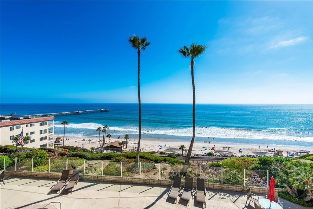 Unobstructed front-row views provide an ever-changing backdrop for prime seaside living in downtown San Clemente. Located in Sunset Shores, this recently remodeled single-level condo frames views of the Pacific Ocean, breaking waves, San Clemente’s pier, sunsets and Catalina. Welcome fresh sea breezes through slide-away floor-to-ceiling Fleetwood glass doors that erase the line between a wraparound view patio and the living room, which features polished concrete floors, a corner ledgestone fireplace, custom walnut feature wall, illuminated coffered ceiling, custom solar shades and a built-in bookcase. The living room flows into a dining area and a custom kitchen with cherry cabinets, granite countertops and stainless-steel appliances. Approximately 1,902 square feet, the open design is distinguished by three bedrooms and three baths, including an ocean-view master suite. Control4 smart-home features lend convenience, and all-new windows, a recently installed HVAC system, plantation shutters, crown molding, a laundry room with washer/dryer set, and concrete, tile and wood flooring are displayed throughout. Serene and quiet, the gated Sunset Shores enclave offers direct beach access, a pool, spa, and a clubhouse. Updated T1 communications wiring is featured, cameras enhance a security system, and secure underground parking provides two spaces for each condo as well as elevator access. Stroll to downtown shopping, restaurants and the Sunday Farmers Market.