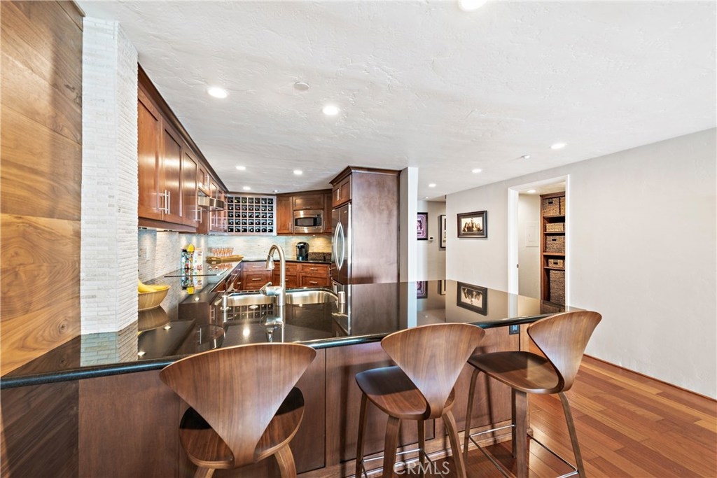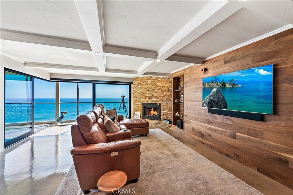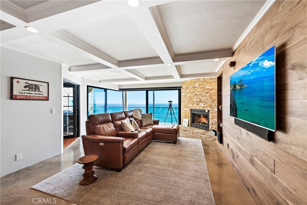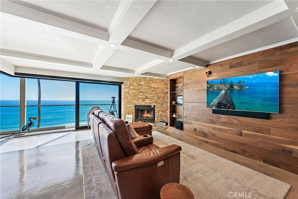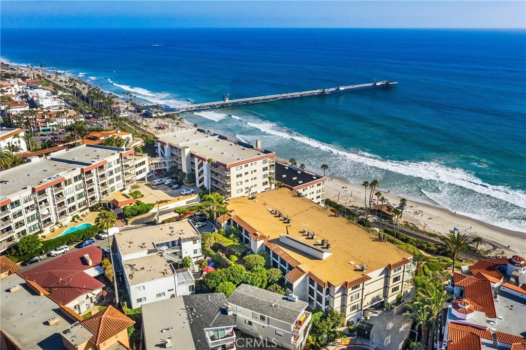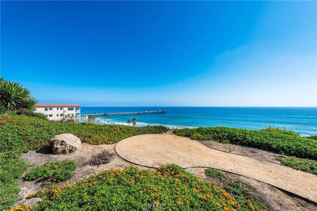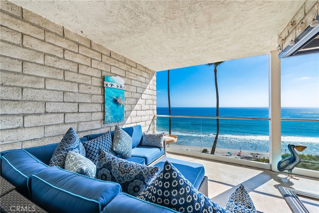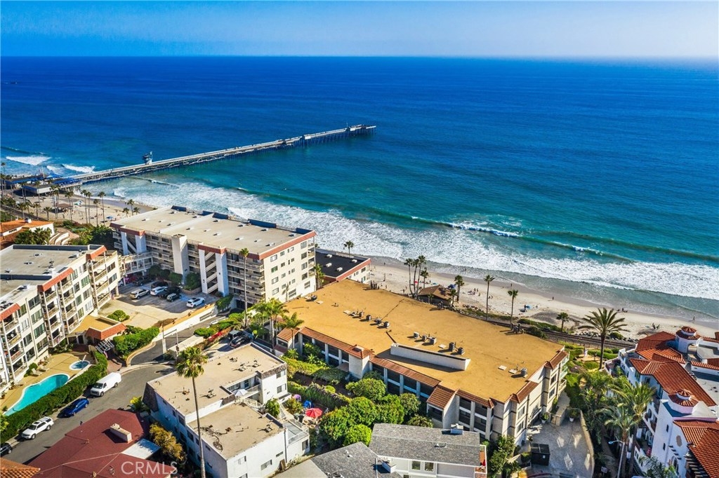 Unobstructed front-row views provide an ever-changing backdrop for prime seaside living in downtown San Clemente. Located in Sunset Shores, this recently remodeled single-level condo frames views of the Pacific Ocean, breaking waves, San Clemente’s pier, sunsets and Catalina. Welcome fresh sea breezes through slide-away floor-to-ceiling Fleetwood glass doors that erase the line between a wraparound view patio and the living room, which features polished concrete floors, a corner ledgestone fireplace, custom walnut feature wall, illuminated coffered ceiling, custom solar shades and a built-in bookcase. The living room flows into a dining area and a custom kitchen with cherry cabinets, granite countertops and stainless-steel appliances. Approximately 1,902 square feet, the open design is distinguished by three bedrooms and three baths, including an ocean-view master suite. Control4 smart-home features lend convenience, and all-new windows, a recently installed HVAC system, plantation shutters, crown molding, a laundry room with washer/dryer set, and concrete, tile and wood flooring are displayed throughout. Serene and quiet, the gated Sunset Shores enclave offers direct beach access, a pool, spa, and a clubhouse. Updated T1 communications wiring is featured, cameras enhance a security system, and secure underground parking provides two spaces for each condo as well as elevator access. Stroll to downtown shopping, restaurants and the Sunday Farmers Market.