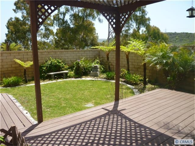 Desirable two story Talega condo with a large backyard including a spacious grassy area and covered raised patio / deck. This open floor plan was just painted with neutral tones throughout. The large kitchen has richly stained cabinetry, granite slab countertops, a breakfast bar and oversized tile flooring. This great property offers a comfortable lifestyle, living room fireplace, inside laundry room, 2 car garage with direct access and is conveniently situated across from the Association Pool and Spa. The Talega community has many amenities including: Golf, 19 miles of Hiking Trails, several Association Pools, Tennis, Parks, Activities, desirable K-8 Vista Del Mar school and the Talega Village Shopping Center.
