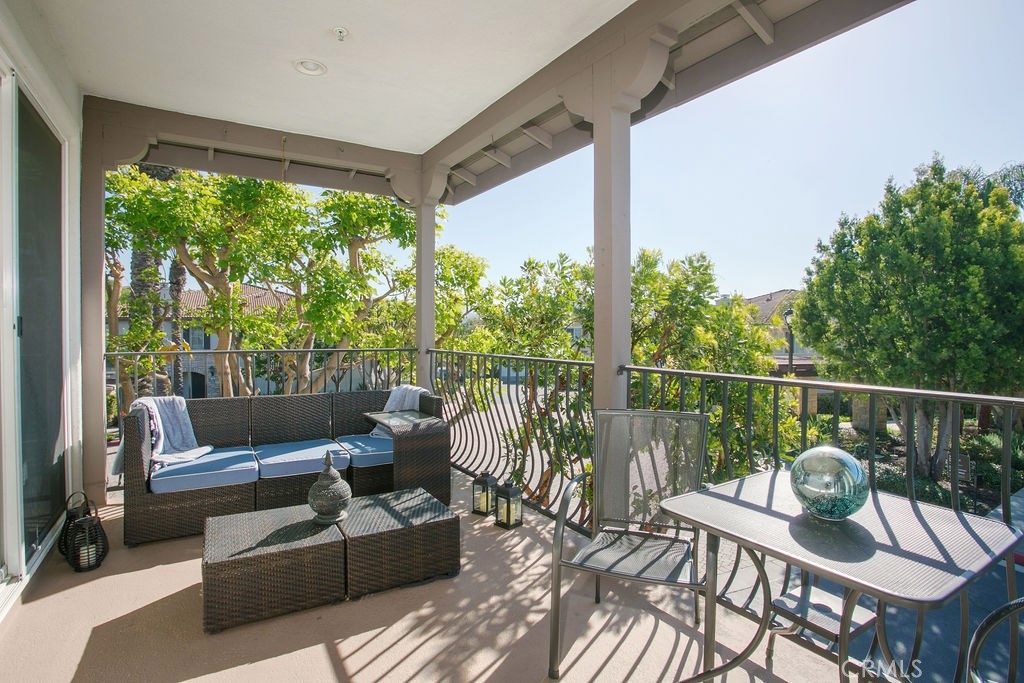Highly Sought after Trinidad Community of Talega. This End Unit has 2 Bedrooms, 2 Baths, 2 Car Garage and a Large Balcony which includes a Sprinkler System that was added to the Deck for BBQing, A Rarity in this complex, the owners had it installed. Short Stroll to the nearby Relaxing Association Pool and Spa. Sports Courts and Parks nearby. Enjoy the all of the Talega Amenities including Talega Park, Pools, Bike, Walk and Hike Trails, Sport Courts, Master Planned Events, Golf and more. Close to Schools, Shopping and Downtown San Clemente. Just minutes from San Clemente Beaches and Ocean.