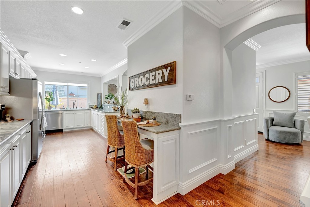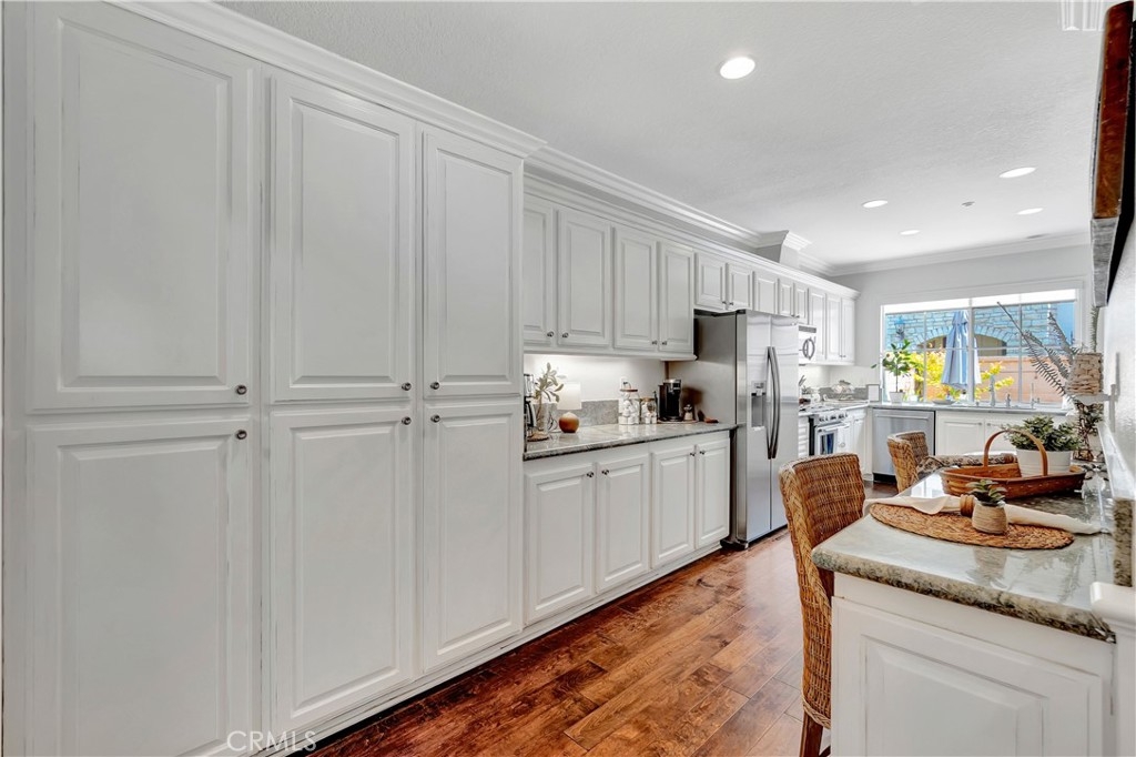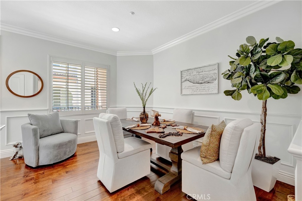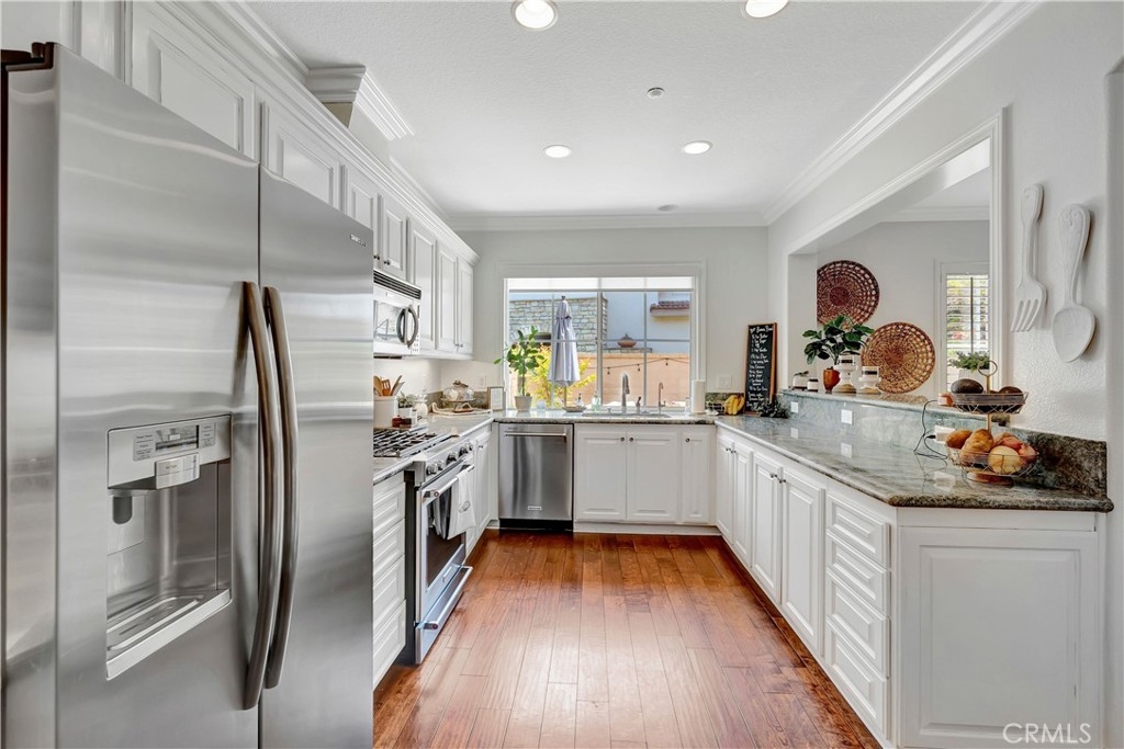 Exceptional homeownership opportunity! This 3 bedroom & 3 bathroom home is in move-in condition while providing upgrades throughout! Walk towards the front door & you will be greeted with a covered porch area providing room for a bench to enjoy this private location & the fresh ocean breeze. Walk inside this home & you will discover a open user-friendly floor plan layout with a formal living room, formal dining room & a large kitchen area. There is a fireplace in the living room, a dining room with space for a larger table & chairs plus a generously sized kitchen that provides an abundant amount of cabinetry storage & granite countertop space plus a built in eating nook. This home provides a light & bright feel with larger windows, plantation shutters, distressed hardwood flooring & recessed lighting. There is custom carpentry craftsmanship work built into the home with chair rail moldings, crown moldings & custom built-ins. Walk upstairs & you will discover a landing area with a built-in desk & the three bedrooms displaying a continuation of custom carpentry & molding improvements. The primary bedroom offers a sitting nook by the window with room to spare for larger furnishings plus a recently remodeled shower area in the large primary bathroom. There is a walk-in closet plus an additional secondary closet space for all your additional storage needs. All bedrooms provide ceiling fans & larger windows for a light & bright feel throughout the upstairs rooms. The back yard is upgraded with hardscape improvements, a beautifully planted garden, sprinklers and artificial grass area for kids & pets at play plus block walls providing a secure & private setting to enjoy the outdoor living space with a low maintenance type of lifestyle. There is an attached two car garage that also provides room for larger vehicles along with additional overhead storage space. This property is well located within the San Clemente neighborhood of Talega & belongs to the Trinidad community complex. You will discover that this community offers incredible open space, mature greenery & landscape improvements throughout the Talega & Trinidad community, not to mention the walking trails while being adjacent to different parks which are all available for your outdoor living enjoyment! This location provides easy access to multiple shopping locations & offers several freeway access options all with a short drive down the hill to spend your free time at the beach within just a few minutes!