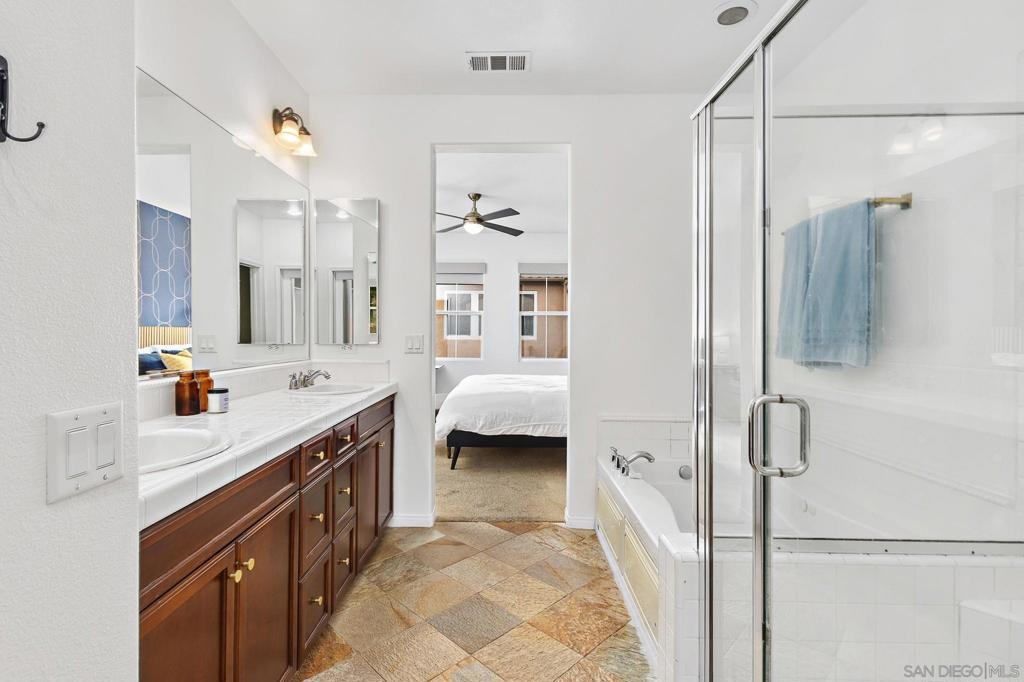 Must see spacious 3-bedroom plus optional 4th-bedroom/bonus/office space 2.5-bathroom townhouse style condo located in the extremely desirable community of Verano within the Talega community! Enjoy the peaceful tranquility of the Talega community tucked in the rolling hills of San Clemente. This community offers beautifully manicured green spaces, walking trails with stunning canyon views, pools, tennis courts, playgrounds, and the Talega Golf Club. And if that’s not enough the community is closely located to multiple shopping centers, Liberty and Vista Hermosa Sports parks, restaurants, breweries, the Outlets at San Clemente, San Juan Hills Highschool, San Clemente Highschool, San Clemente City Beach, and the I-5 freeway. Enter your two-story condo that lives more like a single-family home to find a light and bright space. The high ceilings, big windows and light paint throughout give the whole unit a lofty airy feel. Step into the open concept living room that has a fireplace and large windows that bring in tons of natural light. The living room opens into the sizable eat-in dining room space that also offers tons of natural light from the slider door that leads into the backyard. This charming, low-maintenance yard has plenty of space for outdoor seating, newer turf, and has an outdoor kitchen space that contains a built in BBQ perfect for entertaining and enjoying the California sunshine. Off the dining space is the kitchen which is very spacious and feels more like a single-family home-style kitchen. It features ample cabinet and countertop space as well as a gas range and an island for extra preparation space. There is plenty of room to test your culinary skills by making a 5-star meal or hosting a dinner party. Through the kitchen you’ll find a coat closet for additional storage space, the downstairs half bath, and the laundry room which contains more cabinet storage. At the end of this hall, you’ll find the attached 2-car garage with an EV charger. Before heading up stairs, you’ll find a bonus space on the main living level. The current homeowners have it set up as a playroom, but it would make a great optional 4th-bedroom or home office. Upstairs you’ll find 3 bedrooms and 2 full bathrooms. The primary bedroom is large with plenty of room for a king-size bed. It features two closets, one being a spacious walk-in off the bathroom. There is also a trendy feature wall giving this room a custom feel. The primary en-suite bathroom has plenty of storage and counter space in the oversized dual sink vanity. It also features a stand-alone bathtub and a walk-in shower. Farther back you’ll find the separate toilet room, linen closet storage, and the walk-in closet. Across the hall from the primary bedroom are the two secondary bedrooms which are both good-sized and have their own closets. The second full bathroom is situated between the two secondary bedrooms and features vanity storage and a tub/shower combination. There are additional linen cabinets and counter space in the upstairs landing for extra storage. Don’t miss your opportunity to live in one of Orange County’s most desirable communities!